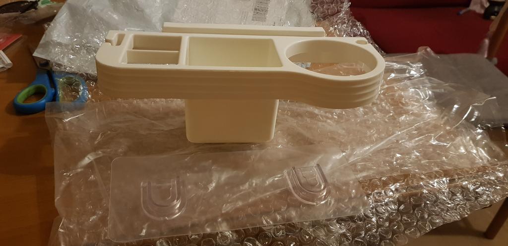 The item was well packaged and arrived safely. It also feels stable. All I have to do now is glue it to the wall and see if it holds up well. I think this plug-in connection is really great because I don't have to drill holes in the tiles. Will update the rating as soon as the holder hangs on the wall for a longer period of time so that I can assess the adhesive strength.