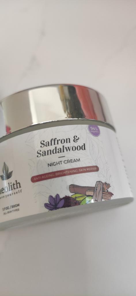 Neolith Saffron Sandalwood Night Cream | 94% Organic | Night Skin Repair, Anti Aging, For Glowing & Young Skin | No Silicon, Mineral Oil, Paraben