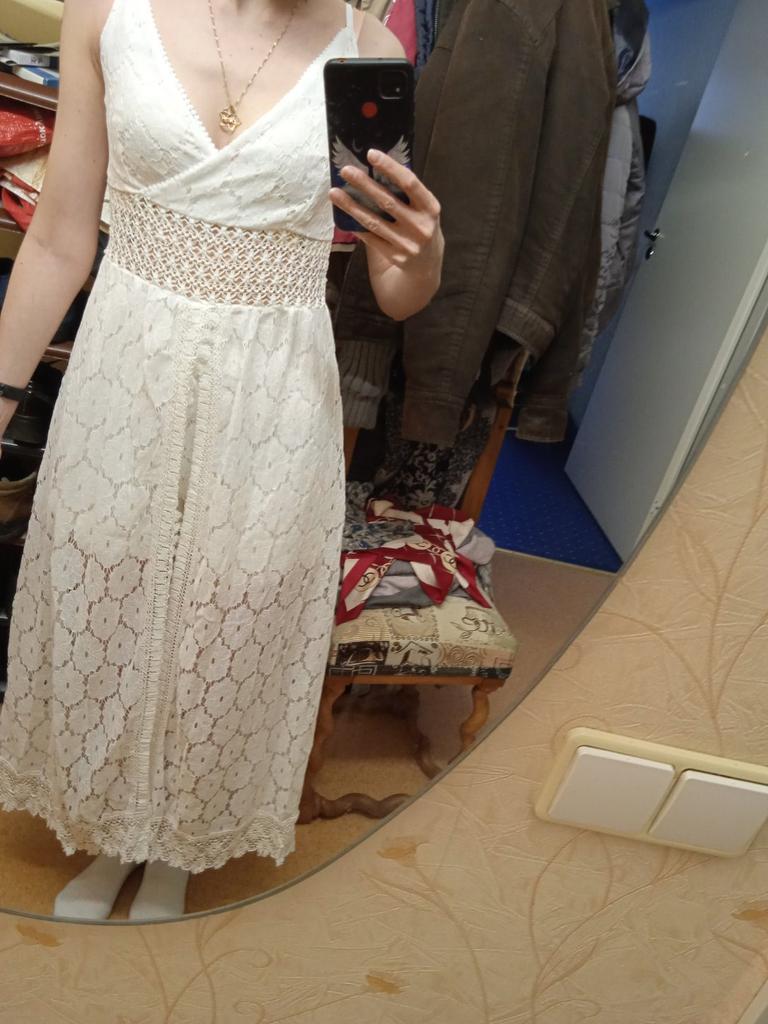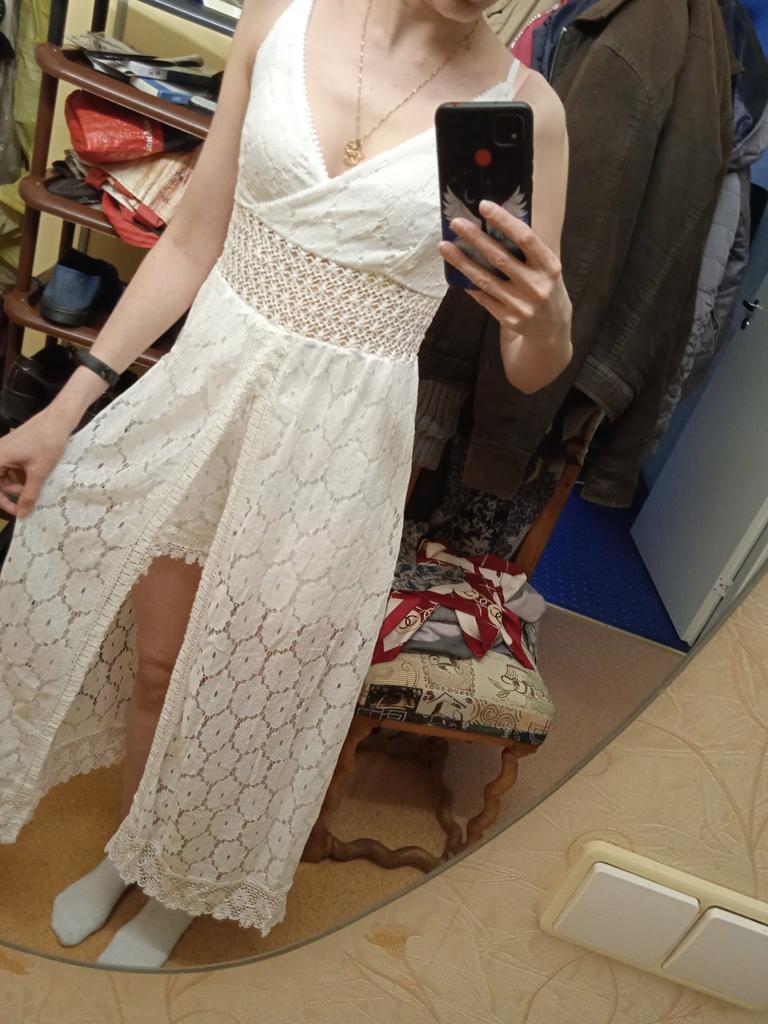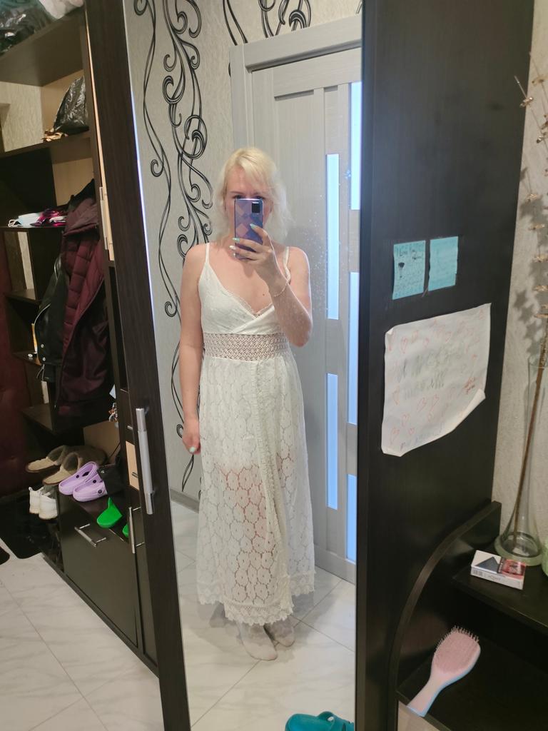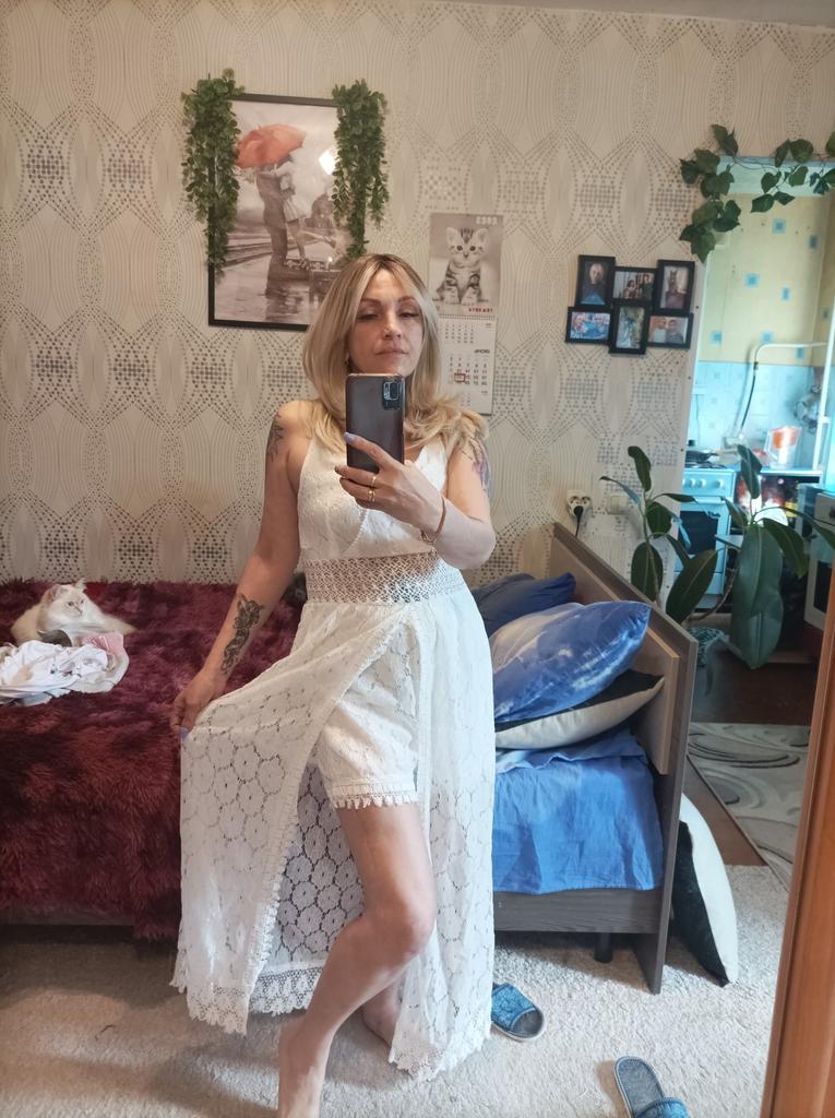 The style is interesting, the processing matches the price. Looks like tulle). I was afraid the size would be big, but no, if I ordered s, it would be tight on my legs.