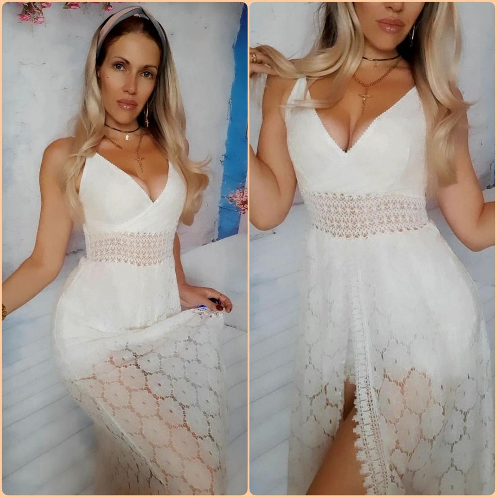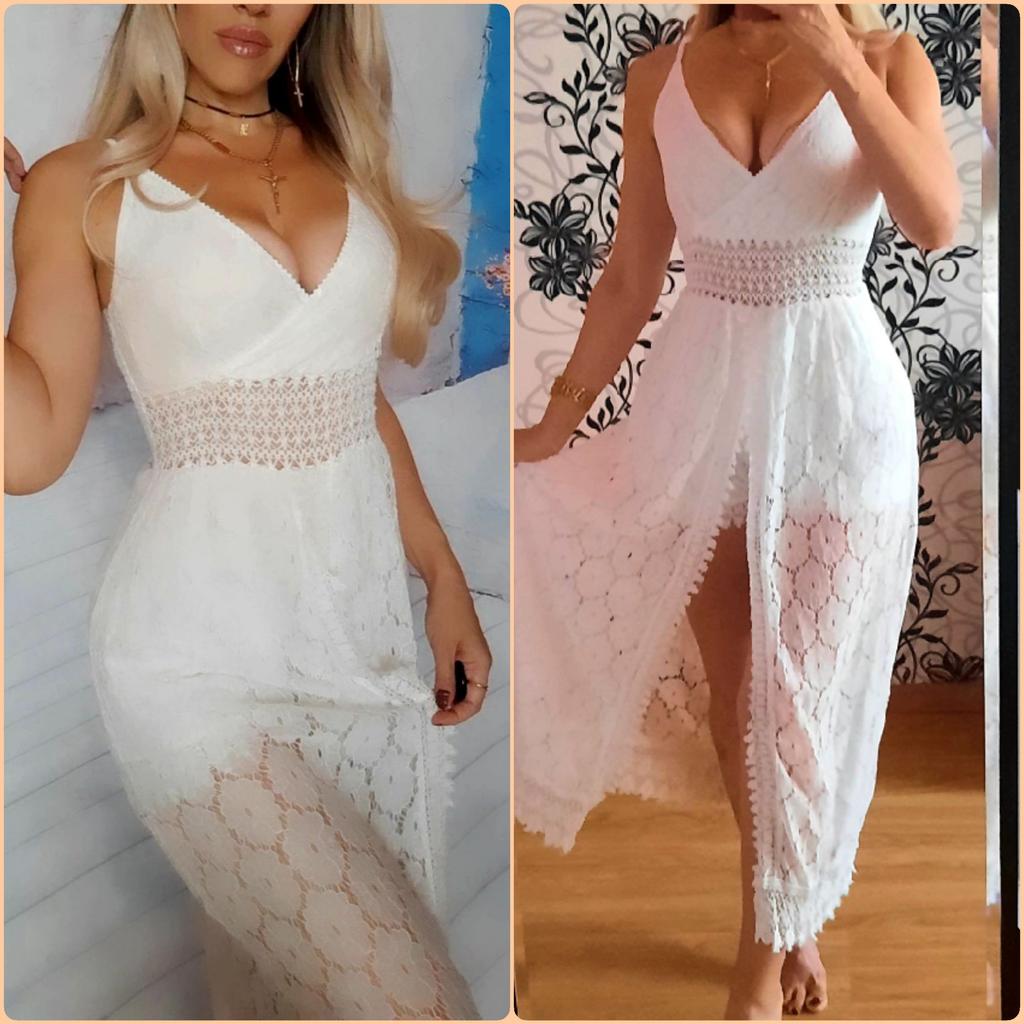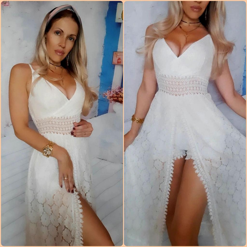 Beach Dress Hollow Out Lace Summer V Neck Long Dress Shorts Playsuit for Beach