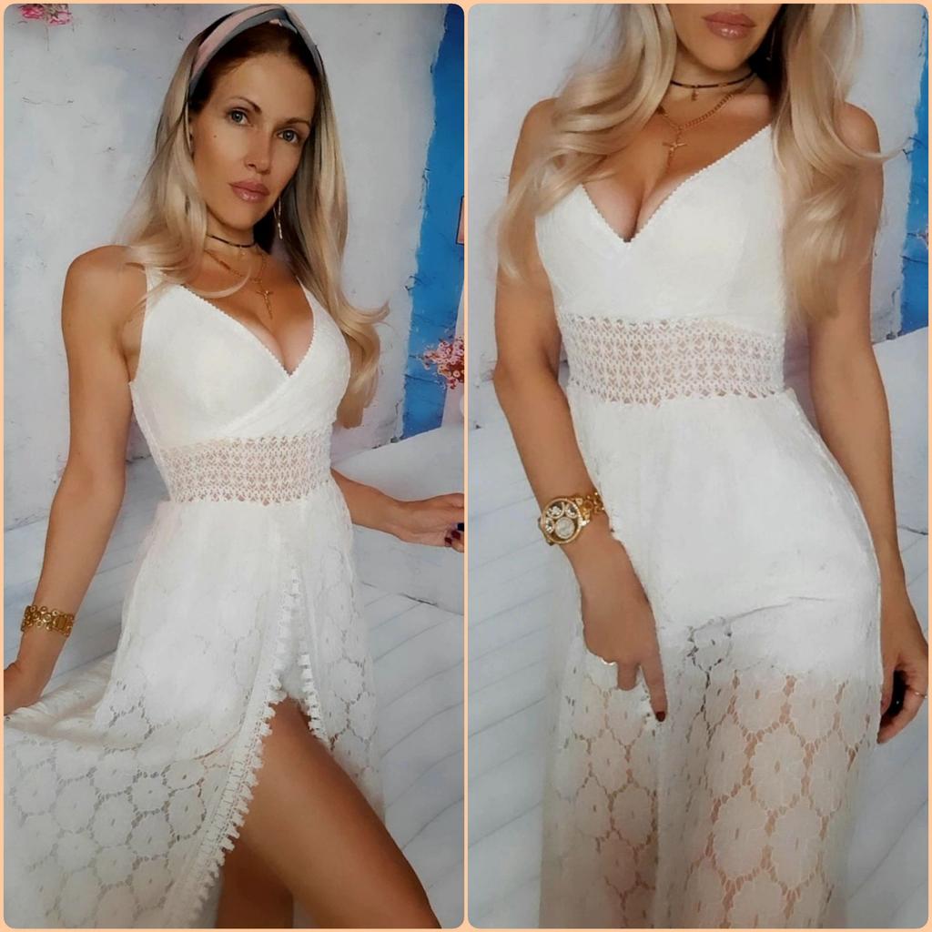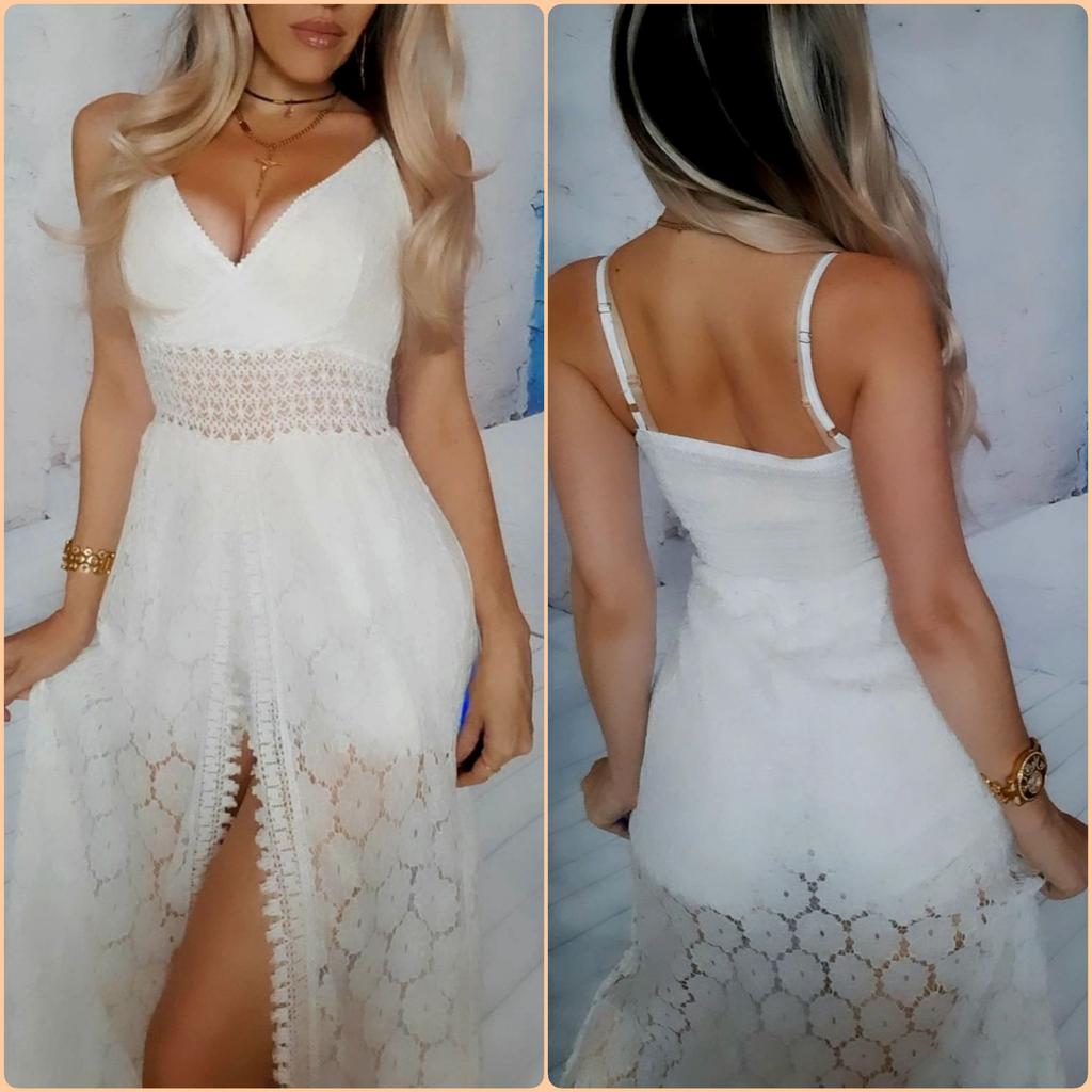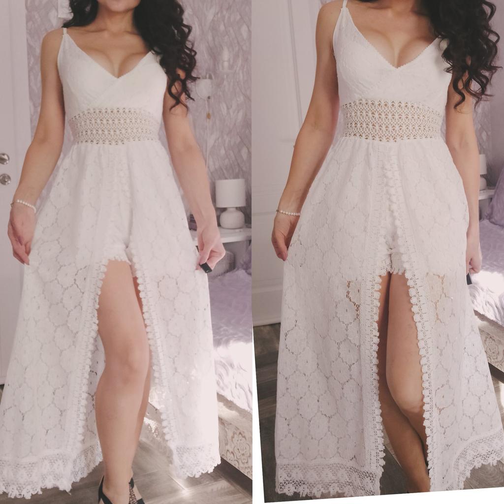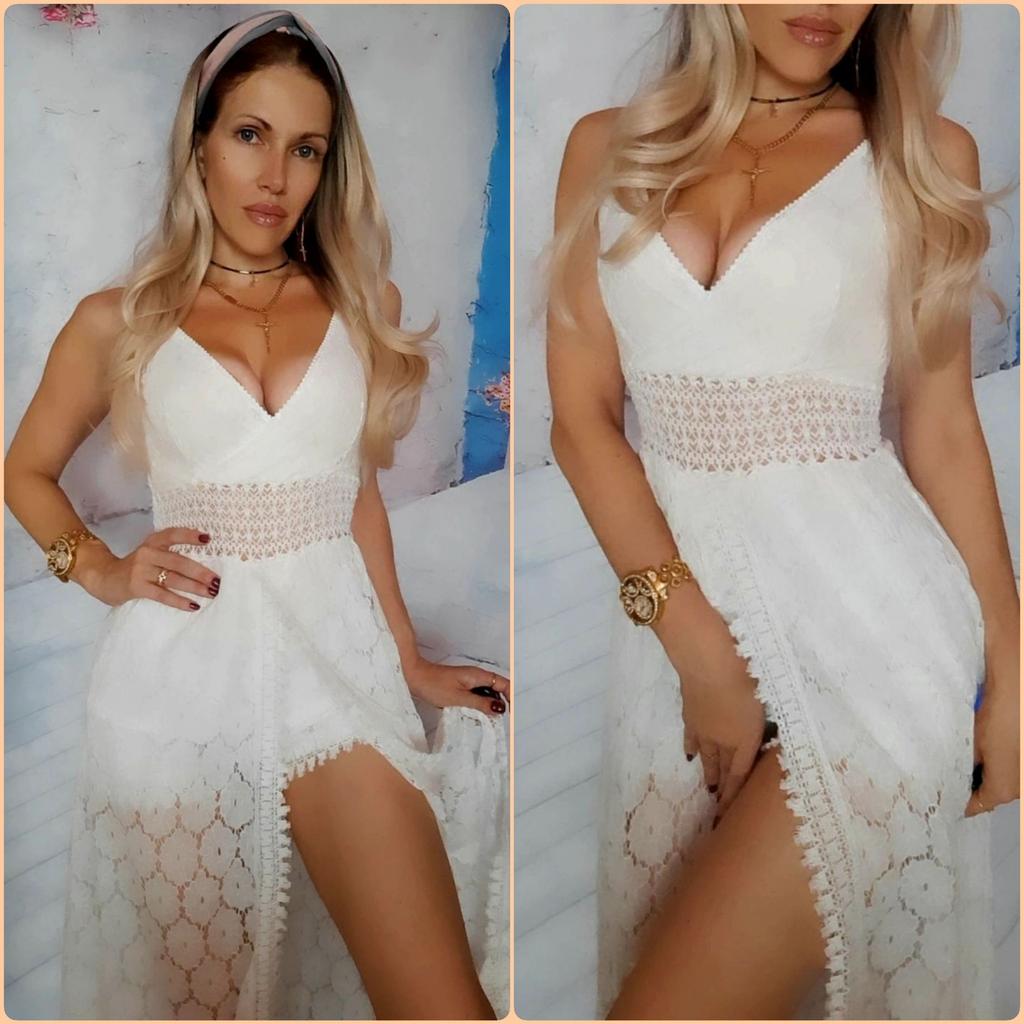 Beach Dress Hollow Out Lace Summer V Neck Long Dress Shorts Playsuit for Beach