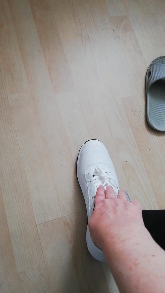 Nice new white sneakers, great. Unpacked, haven't had them long, they fit.