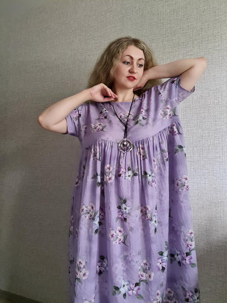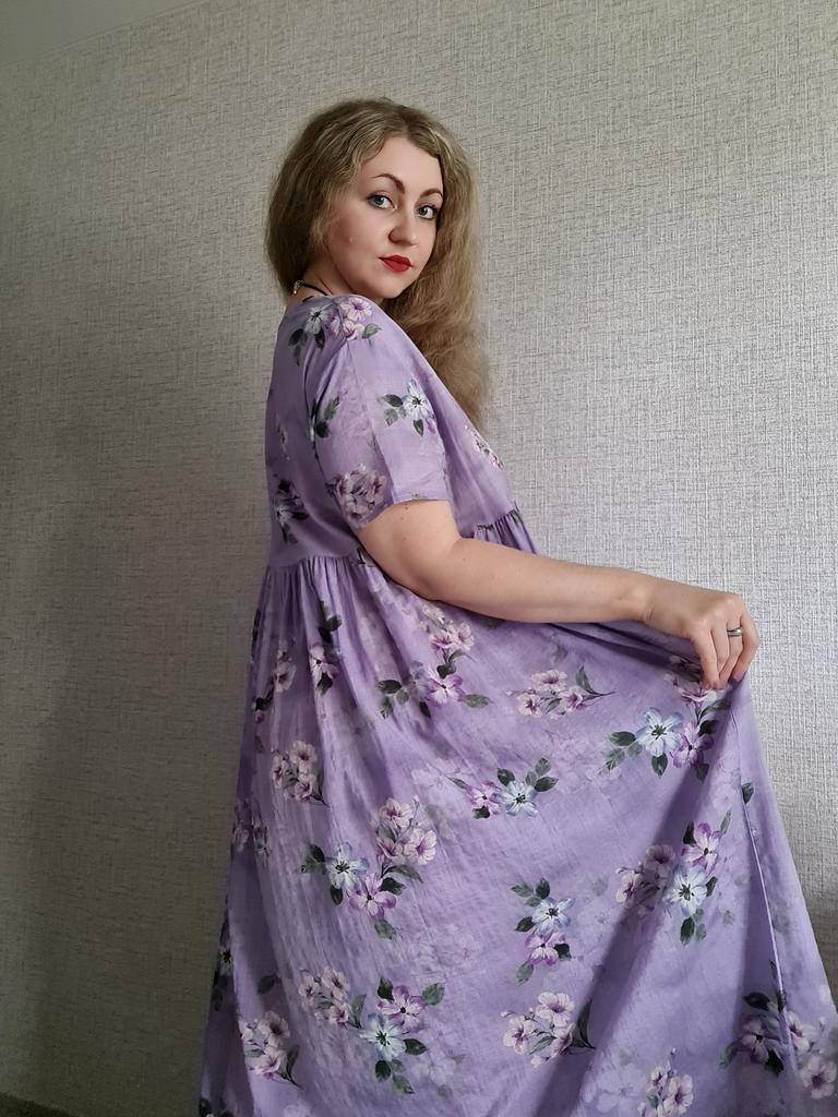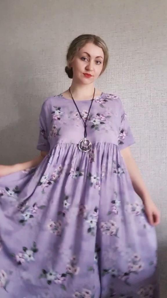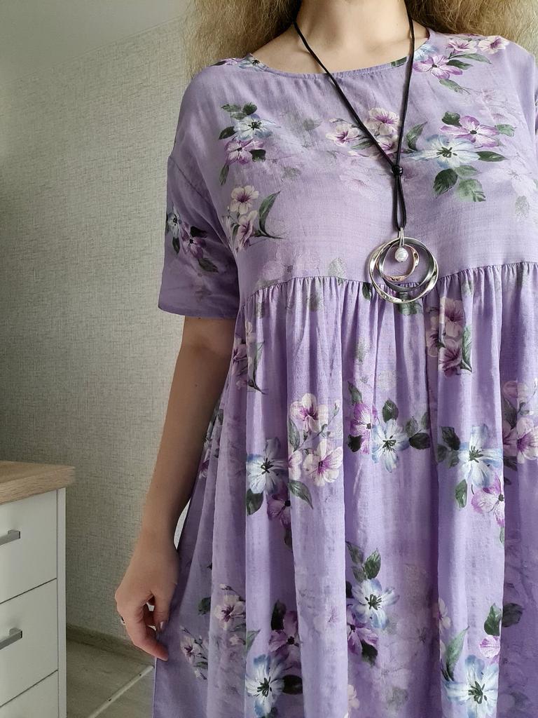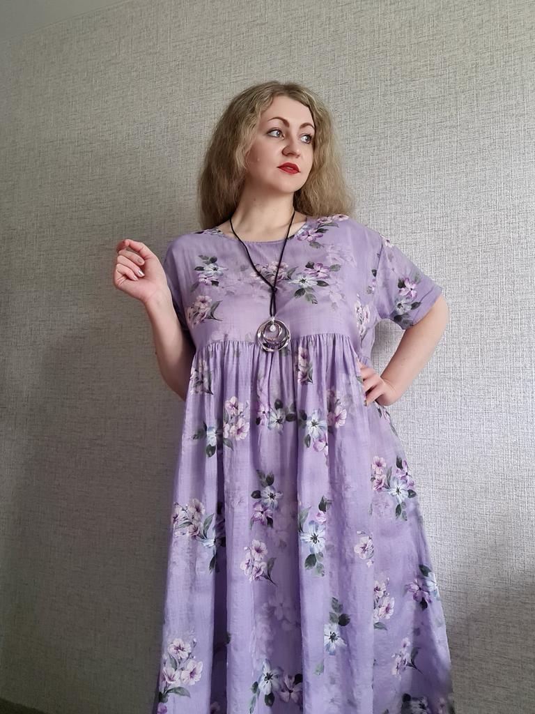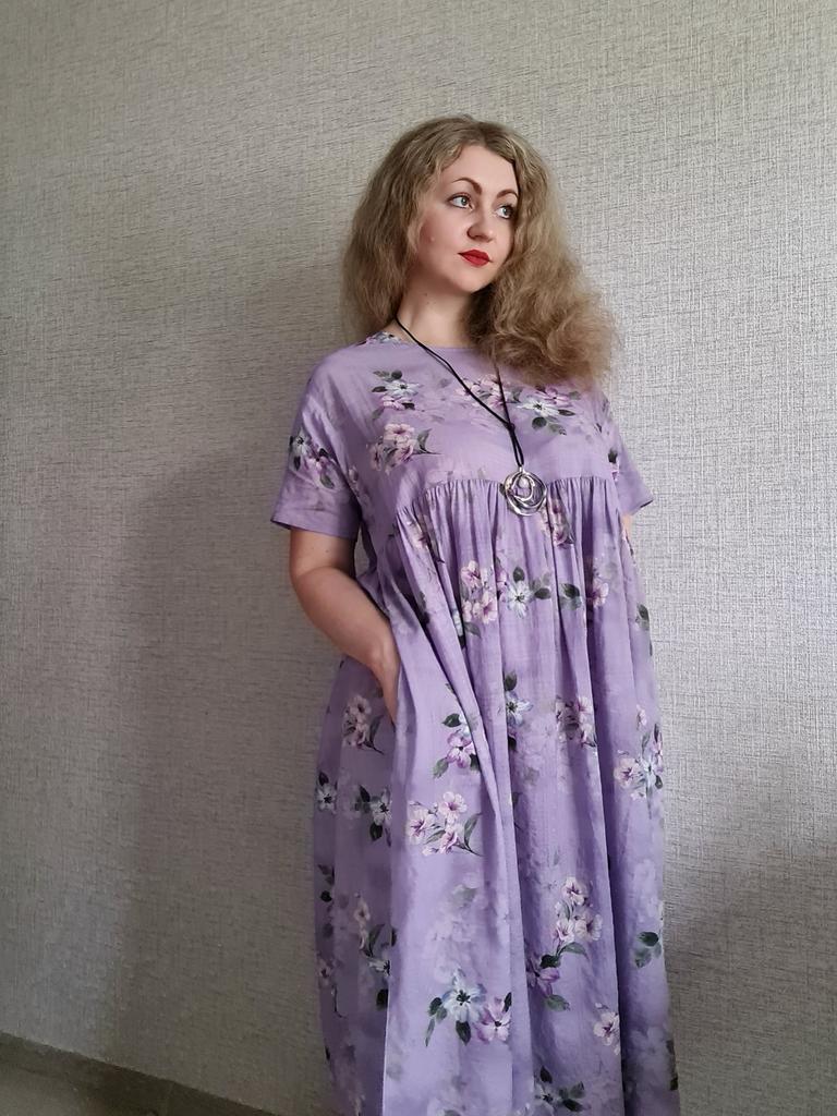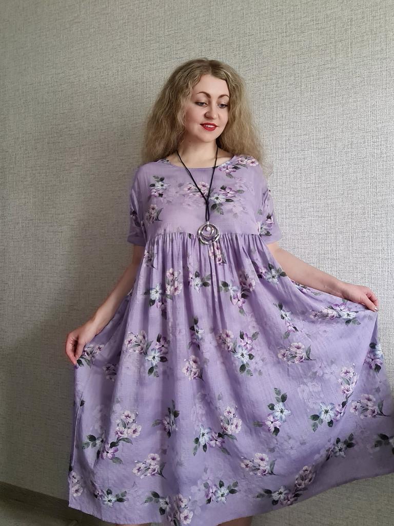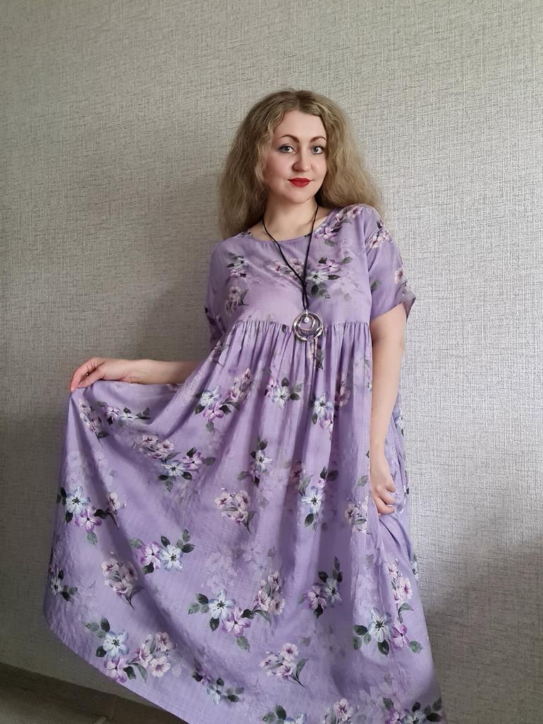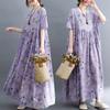 DIMANAF Plus Size Linen Summer Dress Beach Sundress Floral Casual Purple Women Clothing