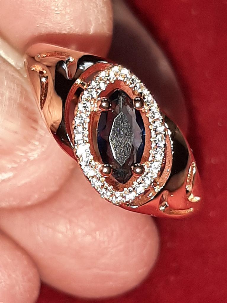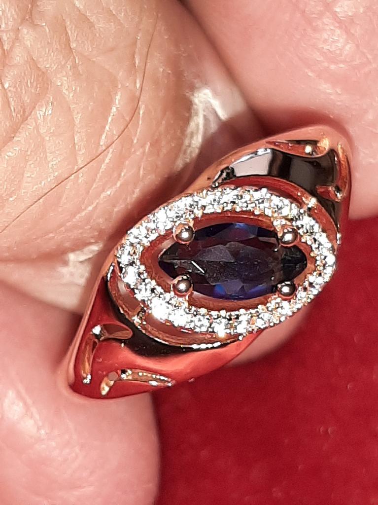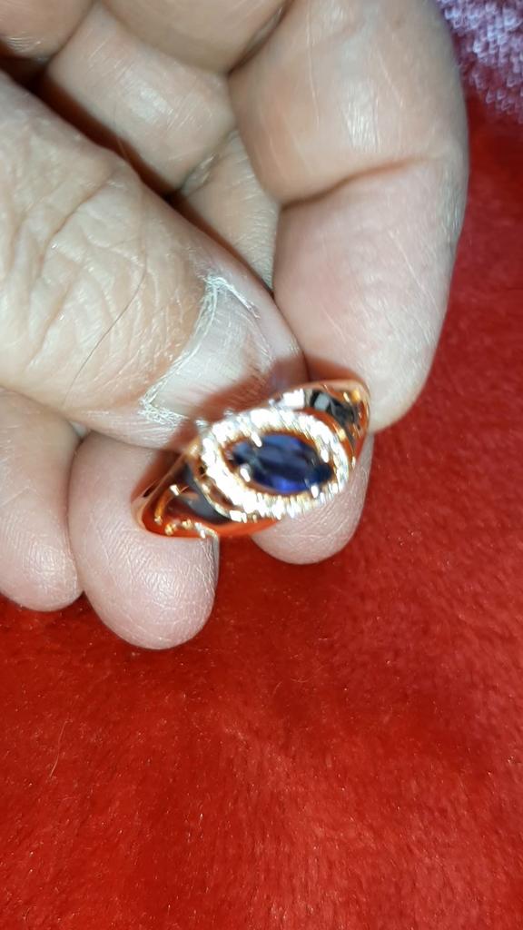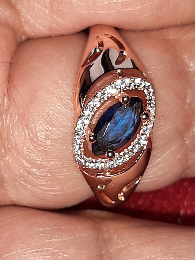 I love this ring. It is very beautiful. The blue stone shines. Very good purchase.