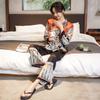 Women's Ice Silk Long Sleeved Trousers Two-piece Suit Pajamas Fashionable Summer Can Wear Printed Sleepwear