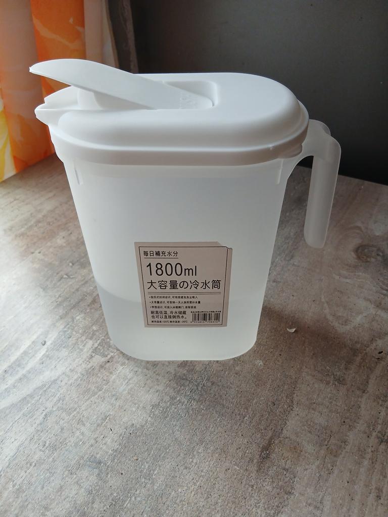 The jug looks small, but that's just how it looks! It holds water as stated - 1.8 l. I didn't really like that the spout on the pitcher is on the lid, and not on the pitcher itself. But the label is hard to peel off!