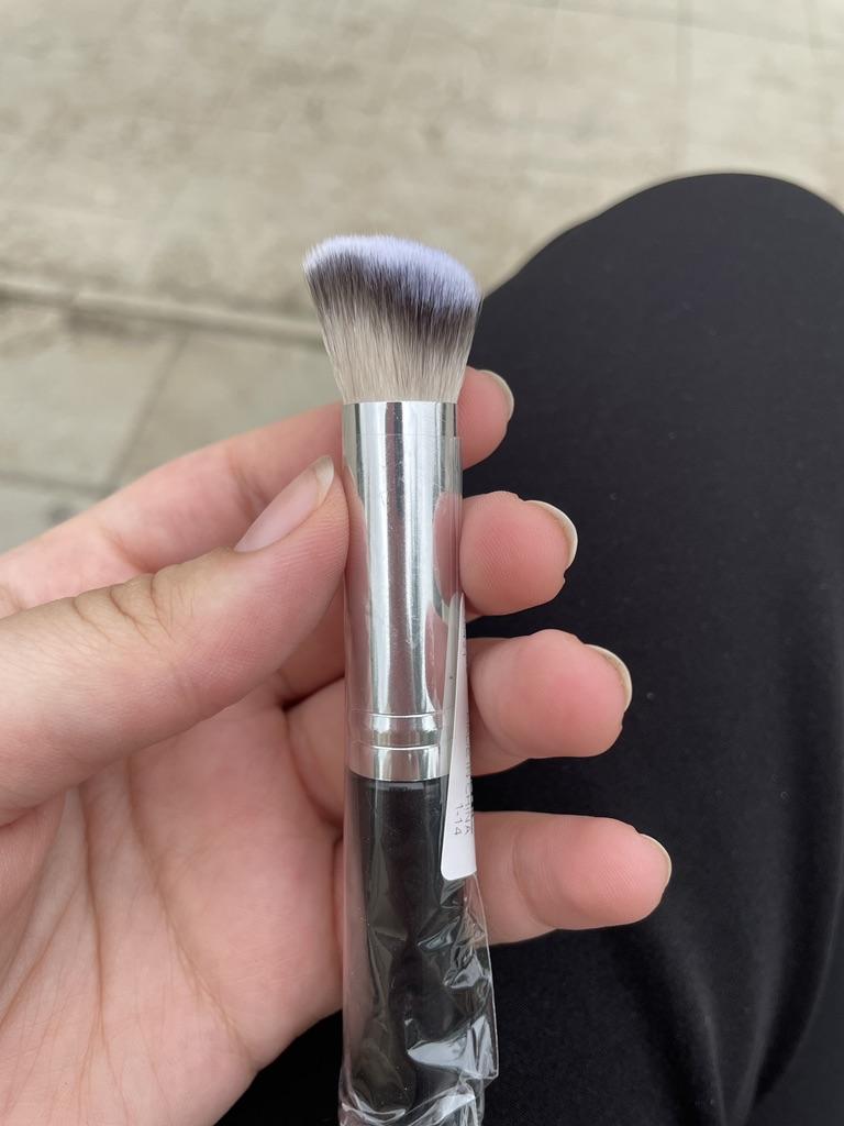 MAKEUP BRUSH For good makeup, you need skills, excellent products, and above all, the right tools: This brush is suitable for applying foundation, short, dense, and extremely soft. Handle made of plastic and aluminum, with an excellent grip. The quality/price ratio is excellent Arrived in Italy with tracked shipping in 16 days in a combined package. Packing: polybag. Recommended purchase👌