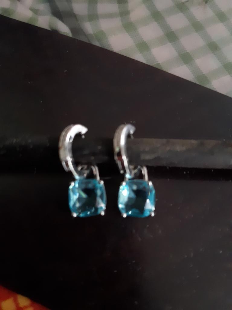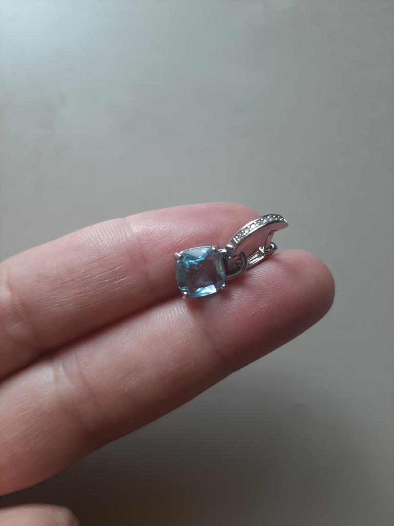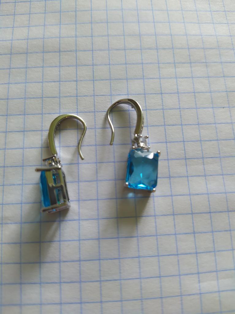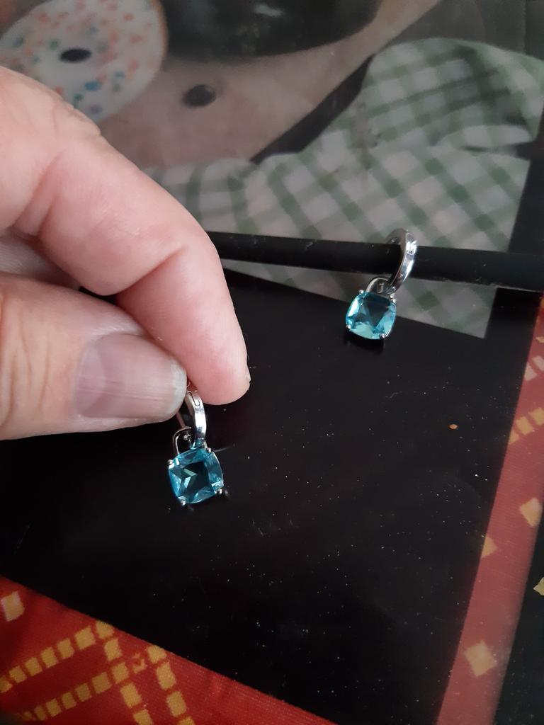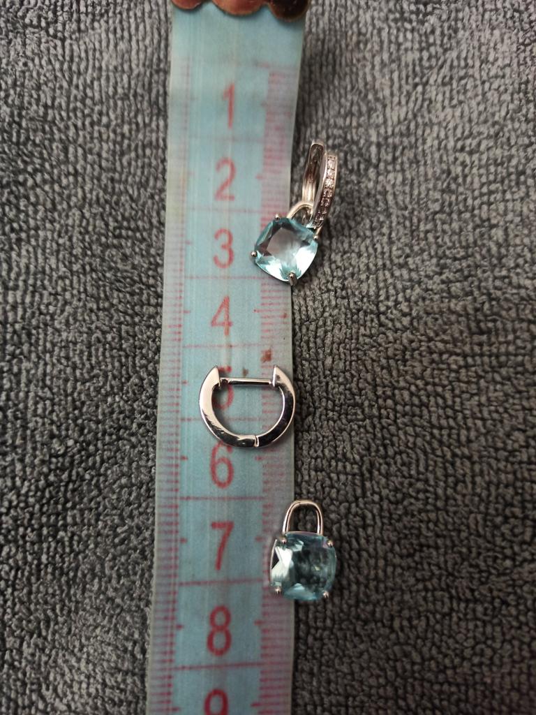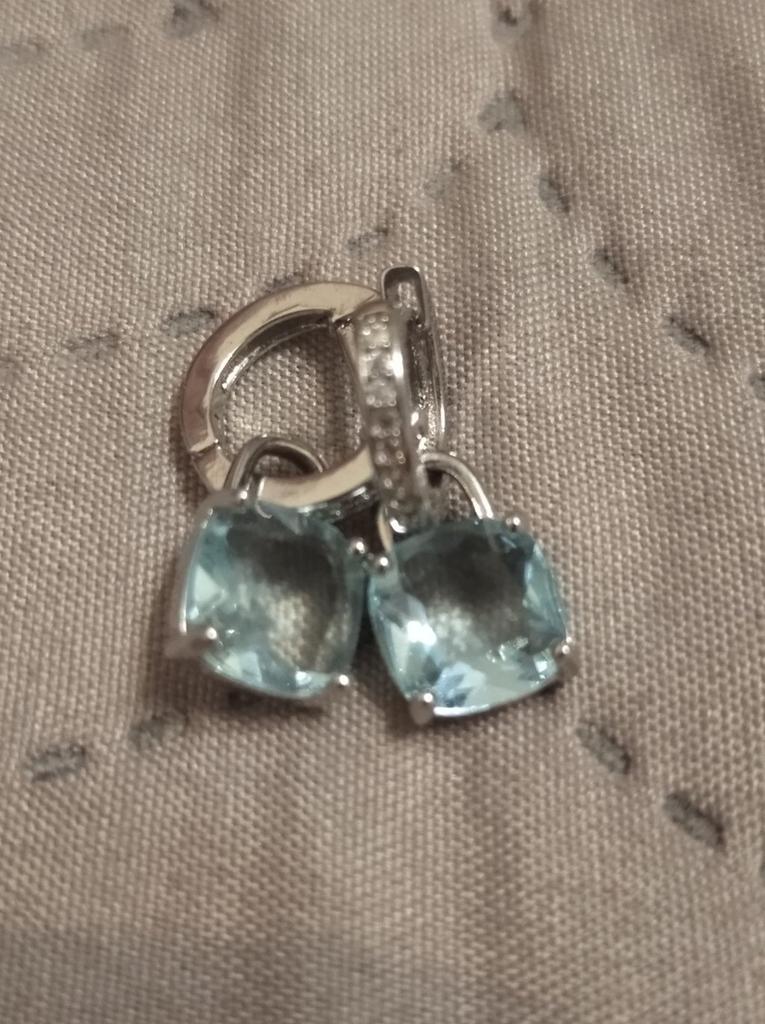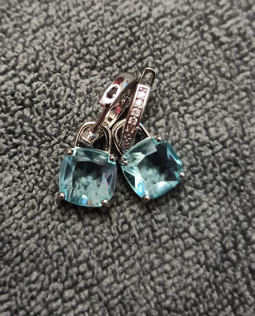 New Arrival Dangle Earrings Women Cushion Cut Aqua Blue Stone Pendant Hoop Earrings Stylish Girls Drop Earrings Statement Jewelry