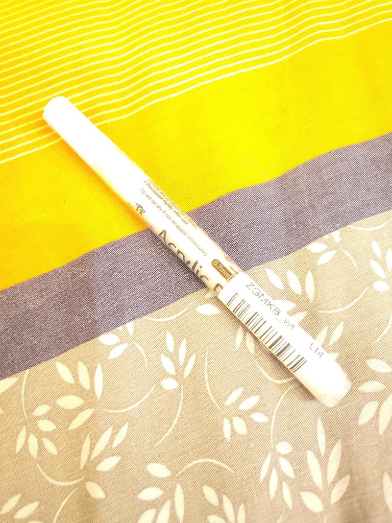 White, writes thinly, just what I need, I draw on pebbles, it suits me. I don't know how long it will last. The rod itself is springy, you need to press it first to get the paint to flow.