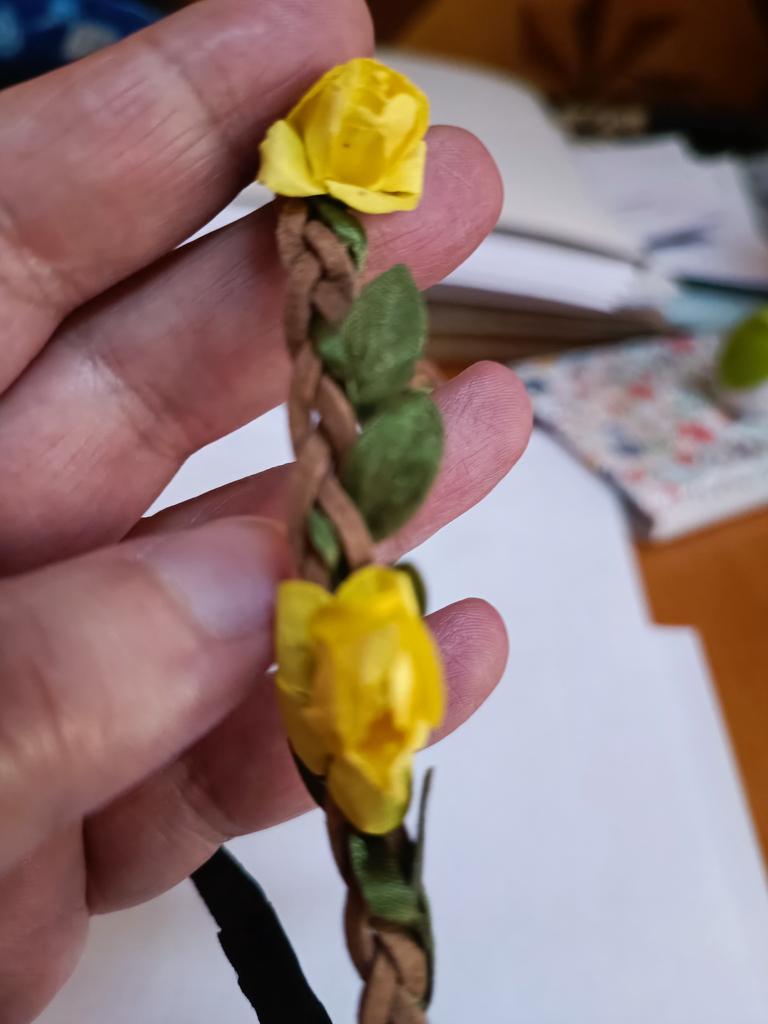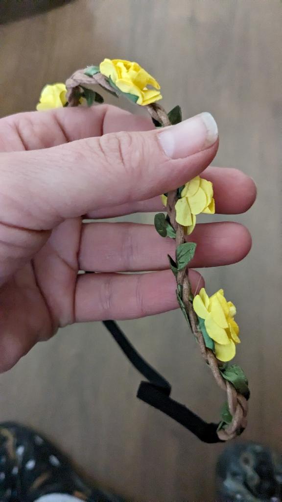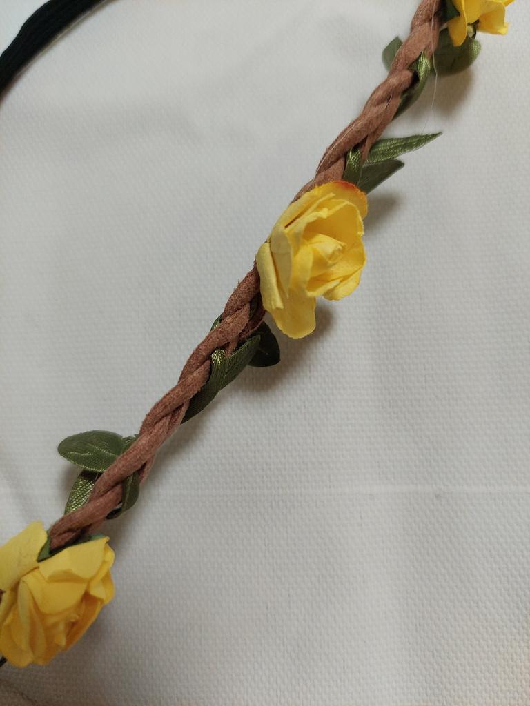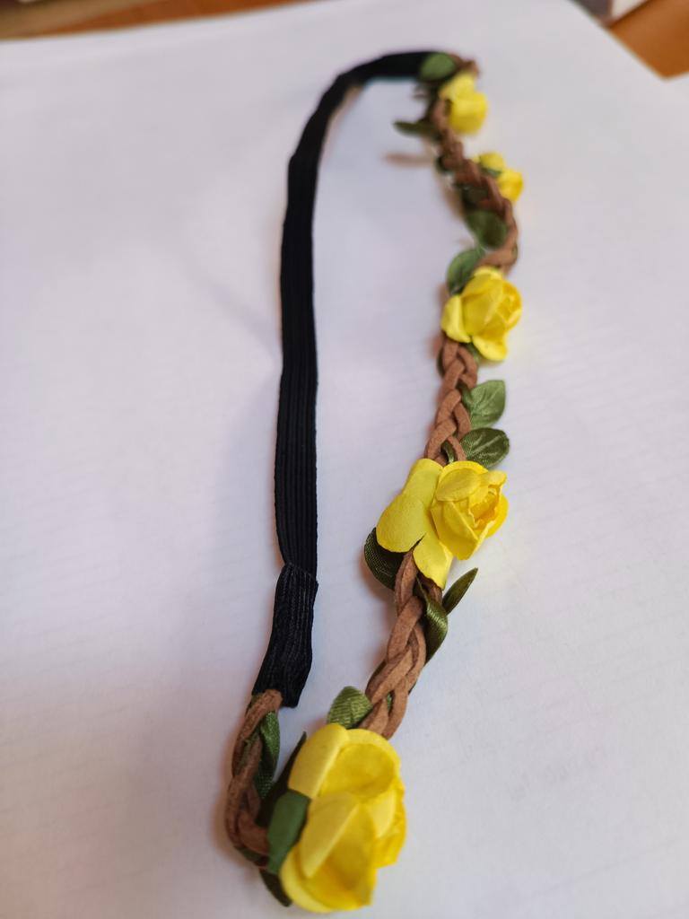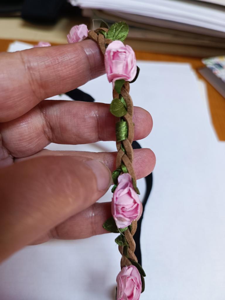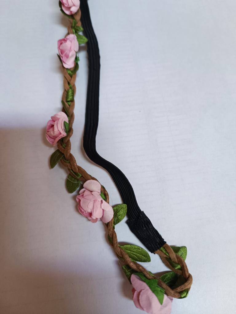 The elastic band and the braided strap itself are of good quality, and the flowers are made of paper.