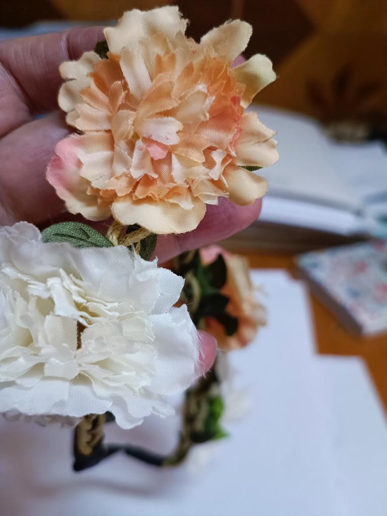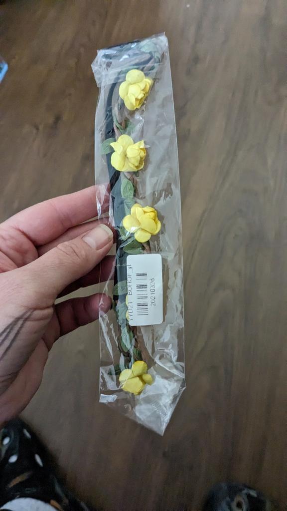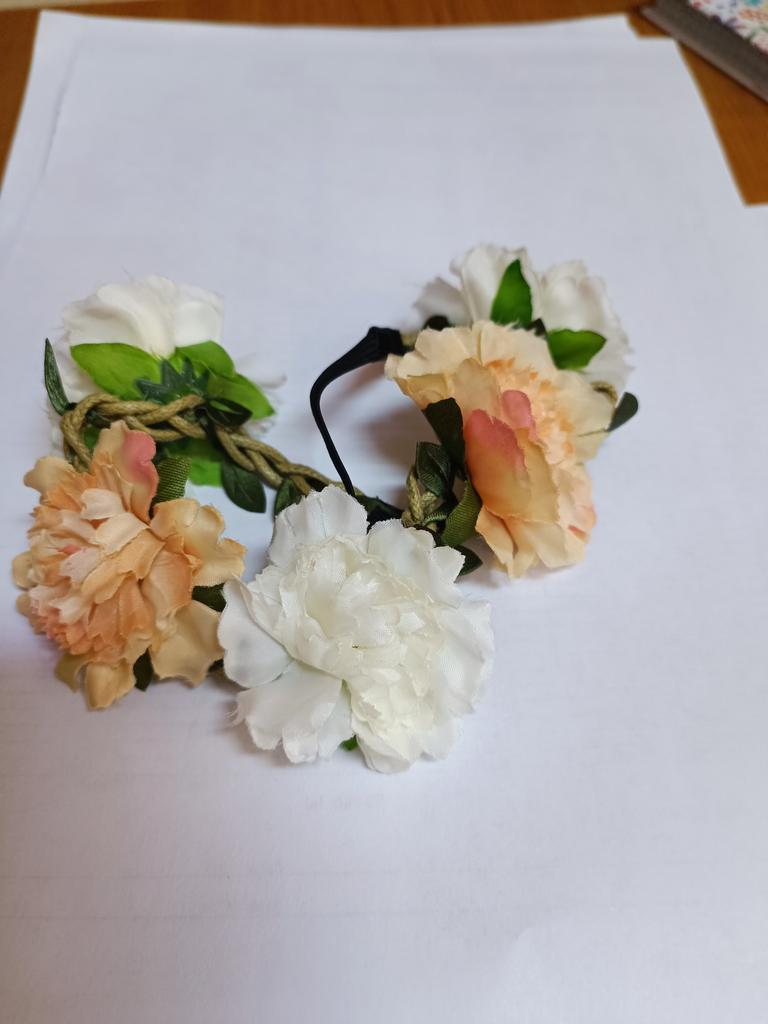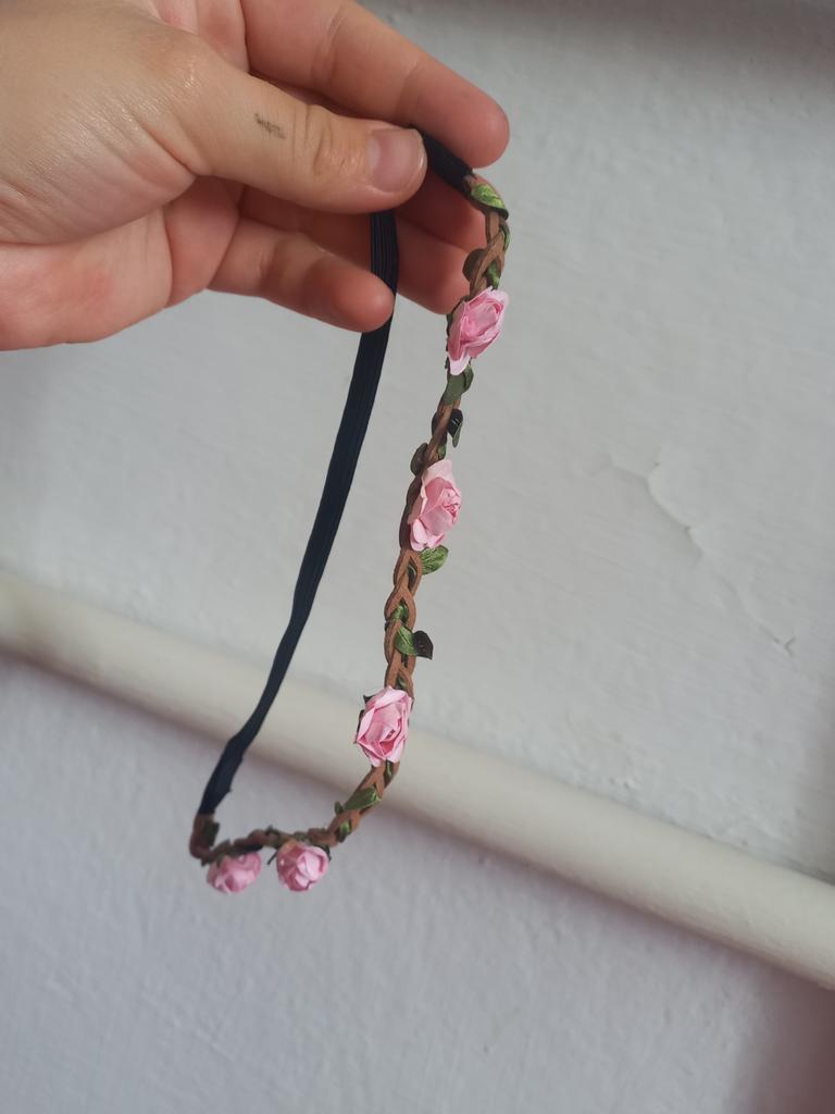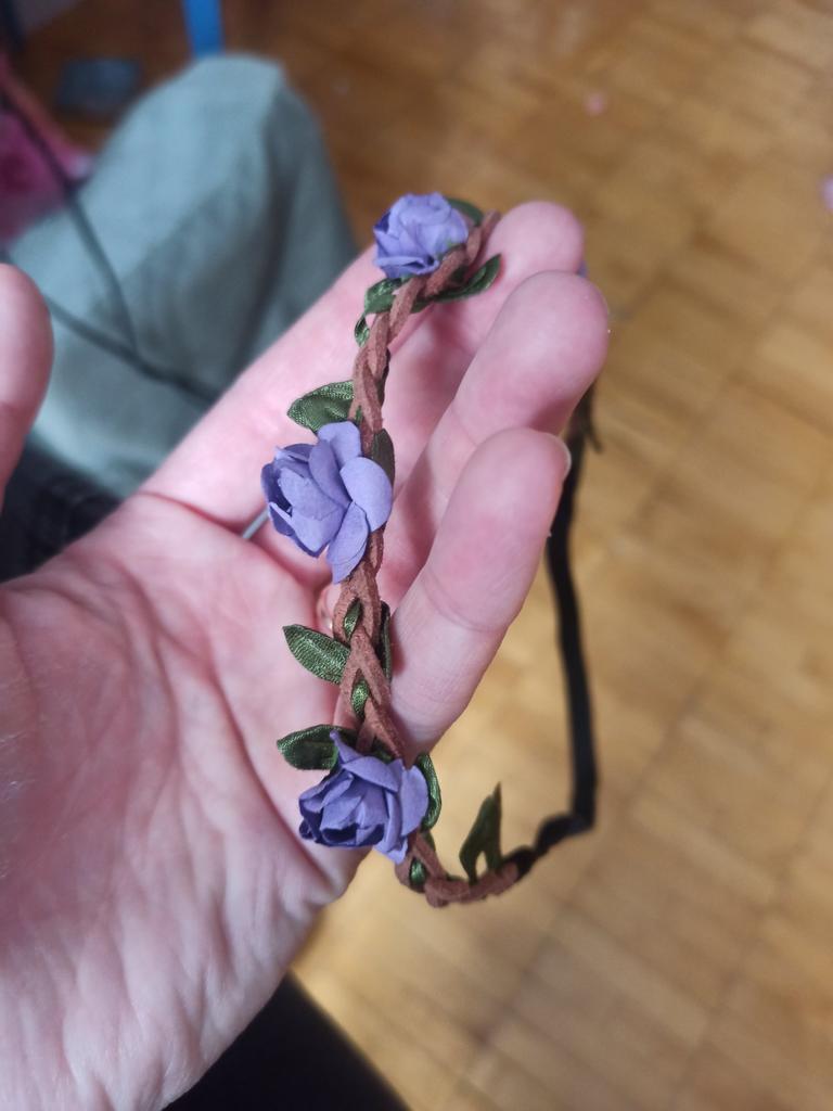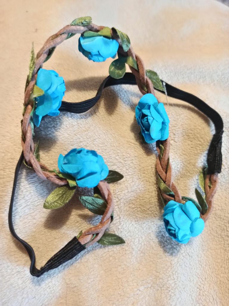 The elastic band and the braided strap itself are of good quality, and the flowers are made of paper.