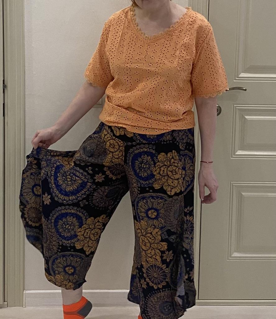 Very nice skirt-pants. Nice fabric, not hot at +30. Good length. Perfect for summer.