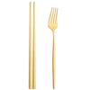2Pcs Black Stainless Steel Set Cutlery Dinner Fork Chopsticks Portable Dinnerware Set Silverware Western Kitchen Home Tableware