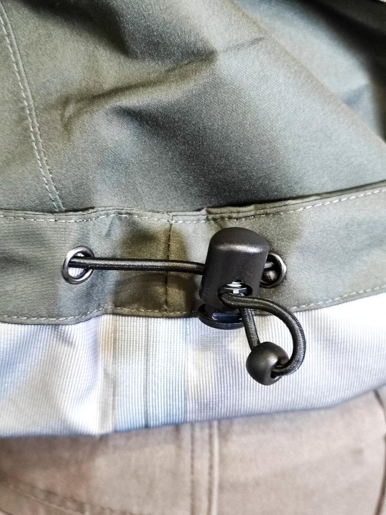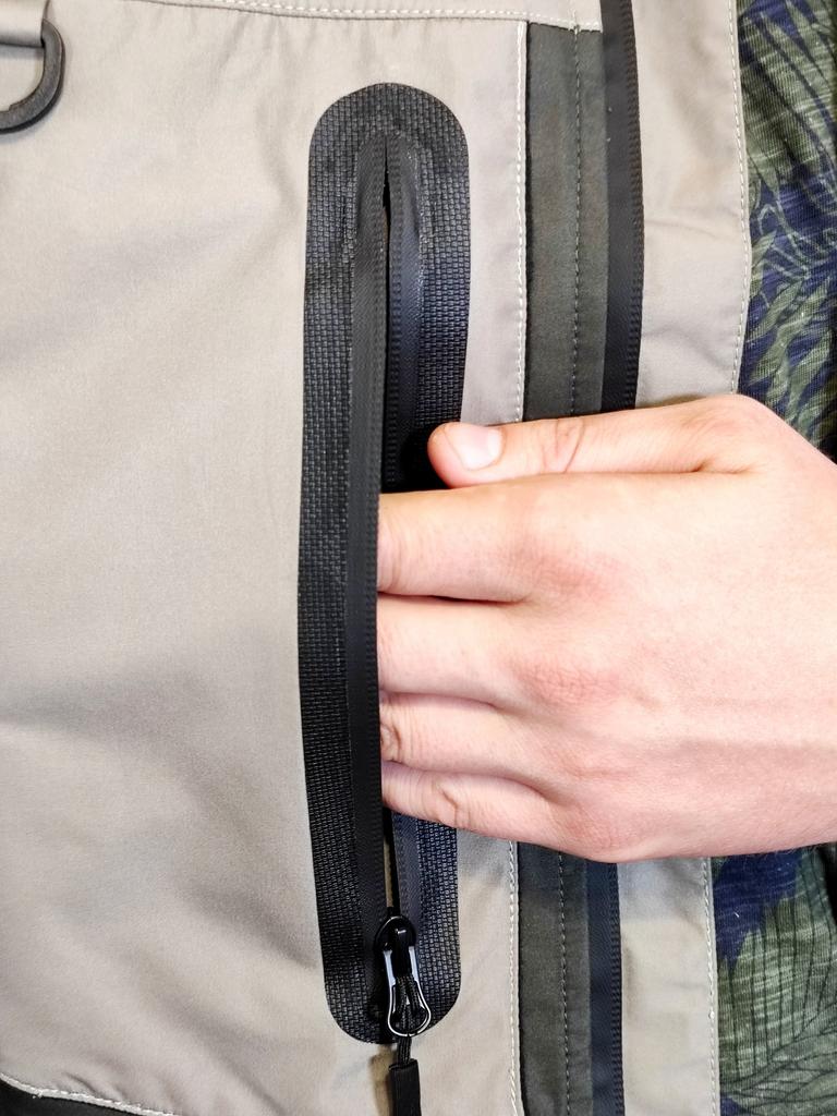 A very light and compact jacket, which is important for summer fishing. The cut is excellent, the seams are even and taped. Very convenient location of pockets. The hood is moderately deep and neatly hides the visor of a baseball cap.