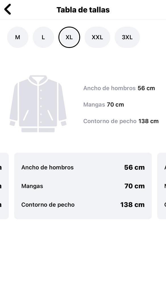 The sizes do not match the item description; the shoulders should measure 56 cm and they measure 57.5 cm; and regarding the chest circumference, the measurement in the size chart is 138 cm and it measures 144.5 cm. The customer support team attended to my request, reaching an agreement, with both parties satisfied.
