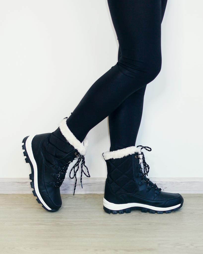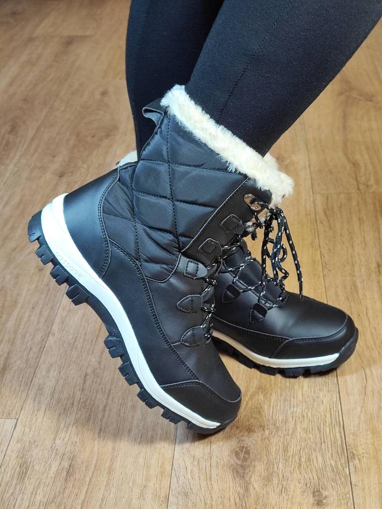 TUINANLE Ankle Boots Women Winter Shoes Keep Warm Non-slip Black Snow Boots Ladies Lace-up Plus Size 41 Boots