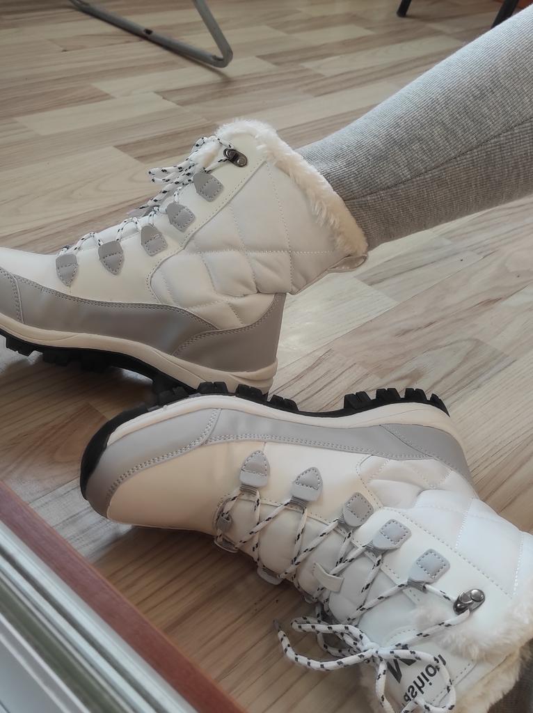 * Lace-up winter boots* 💗𝗟𝗶𝗲𝗳𝗲𝗿𝘇𝗲𝗶𝘁 3 weeks 💗𝗟𝗶𝗲𝗳𝗲𝗿𝘂𝗺𝗳𝗮𝗻𝗴 A pair of boots of appropriate color and size. Available in the colors white, red and black and in shoe sizes 35 to 41. 💗𝗤𝘂𝗮𝗹𝗶𝘁ä𝘁 At first glance, I'm really impressed by the quality of the outside, the shoes are lined with some kind of leather, but I assume that's faux leather. As a result, the shoes will probably be reasonably waterproof in winter. Otherwise, I think it's great that you can lace the shoes individually and that they adapt perfectly to the shape of your foot or ankle. Inside is a really nice fluffy fake fur. Very convenient. 👍 The laces are nice and sturdy and probably won't tear that easily. I also really like the design. Really nice! 🥰 Unfortunately, the shoes were delivered to me in the wrong size. I had ordered size 41, which actually corresponds to the German 40, since the sole length is 26 cm. Unfortunately, a 39 was delivered to me. This one doesn't suit me at all. 🙈 Too bad! 💗𝗙𝗮𝘇𝗶𝘁 Even if the wrong shoe size was delivered to me, I can definitely recommend these shoes. Quality, design and comfort are rated as very good here. 👌