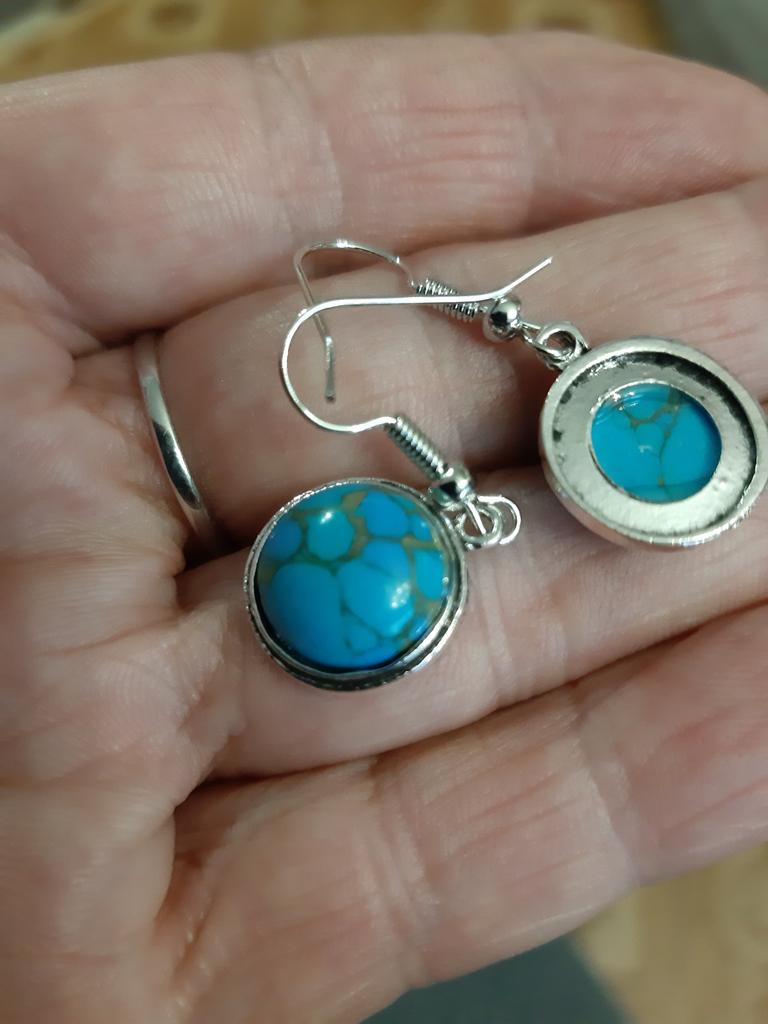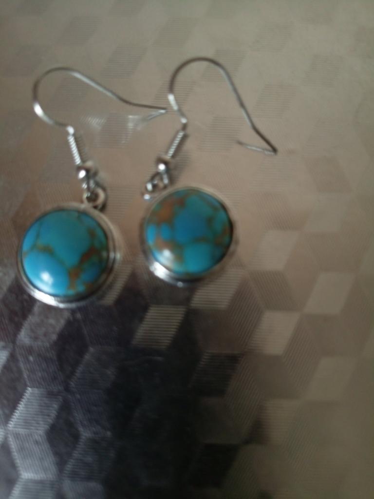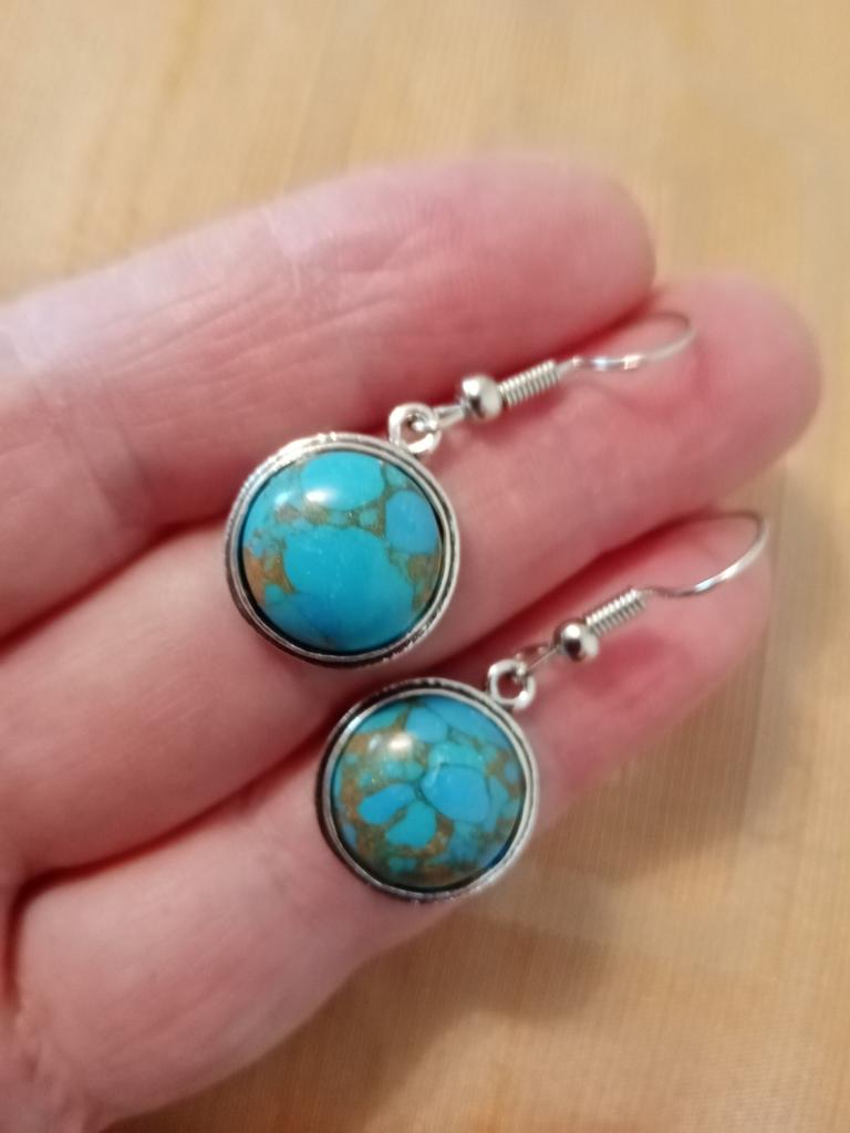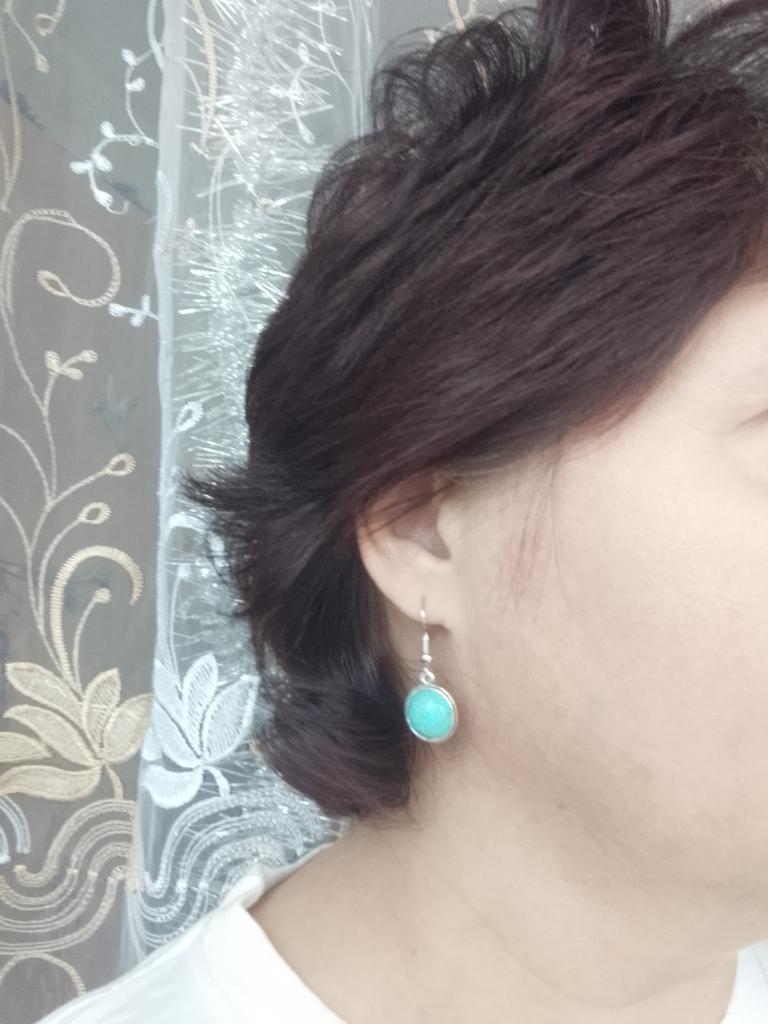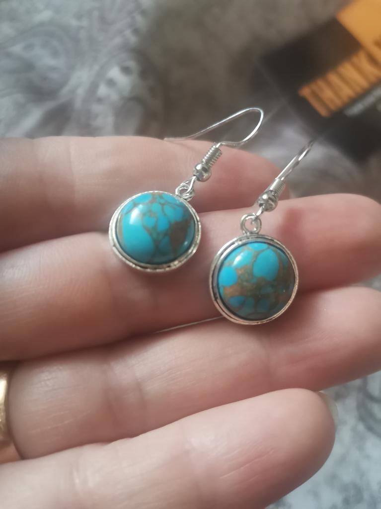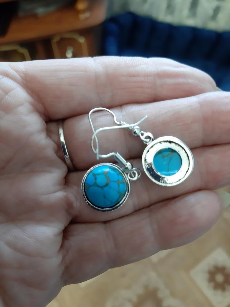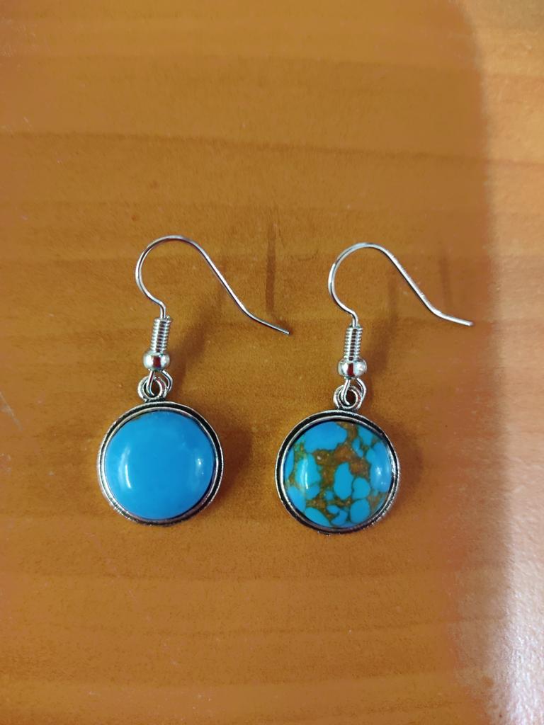 They look beautiful. The stone is natural turquoise. I generally like round shapes. Thank you!