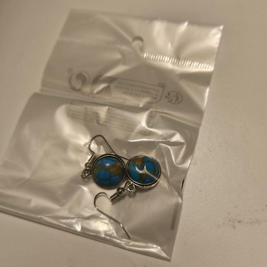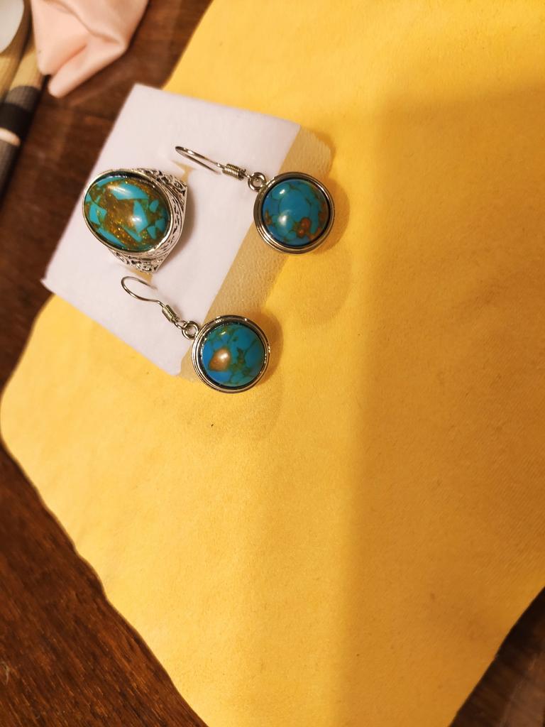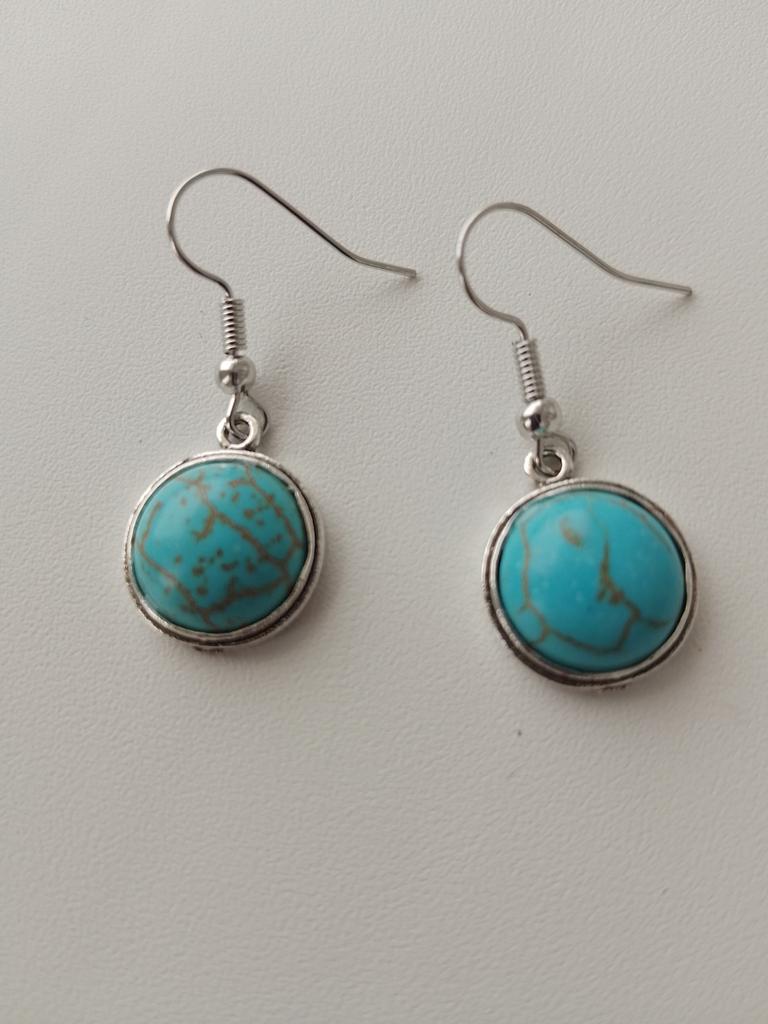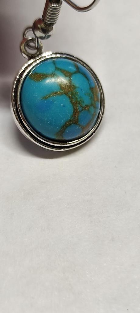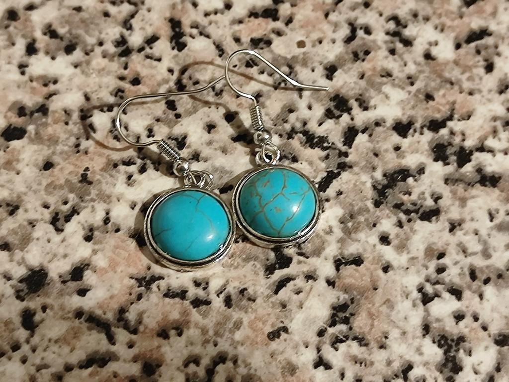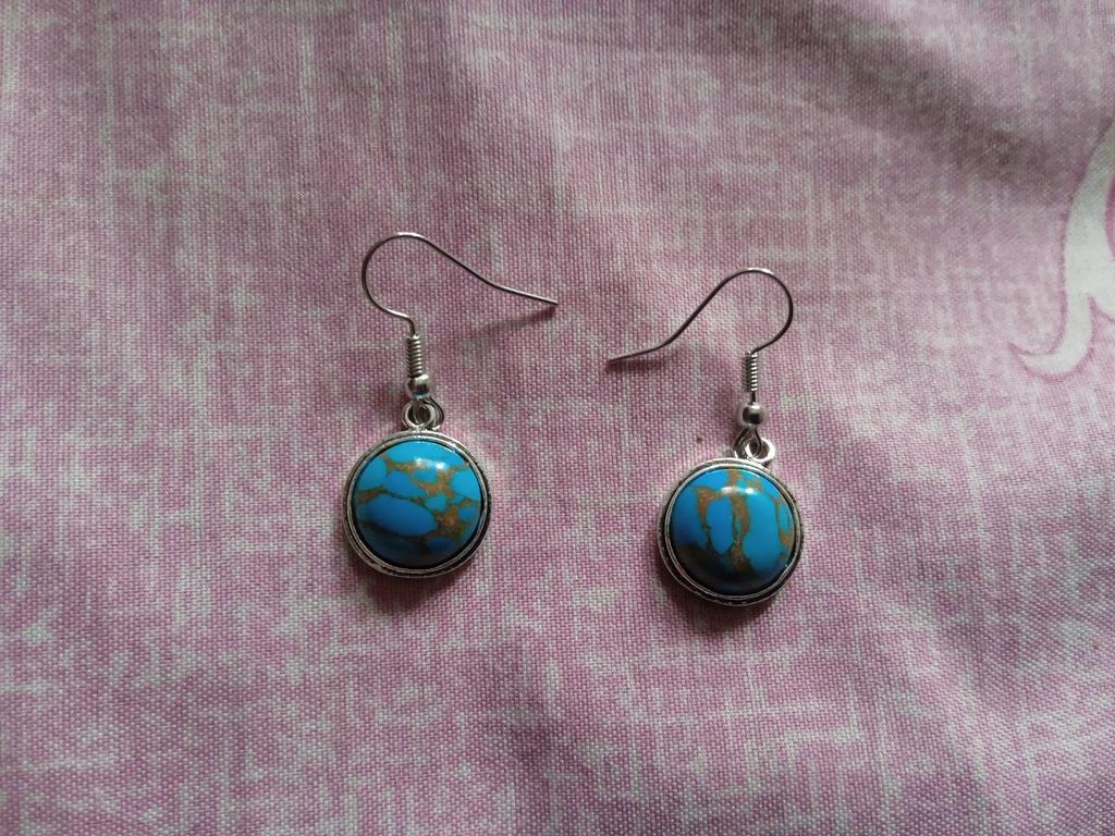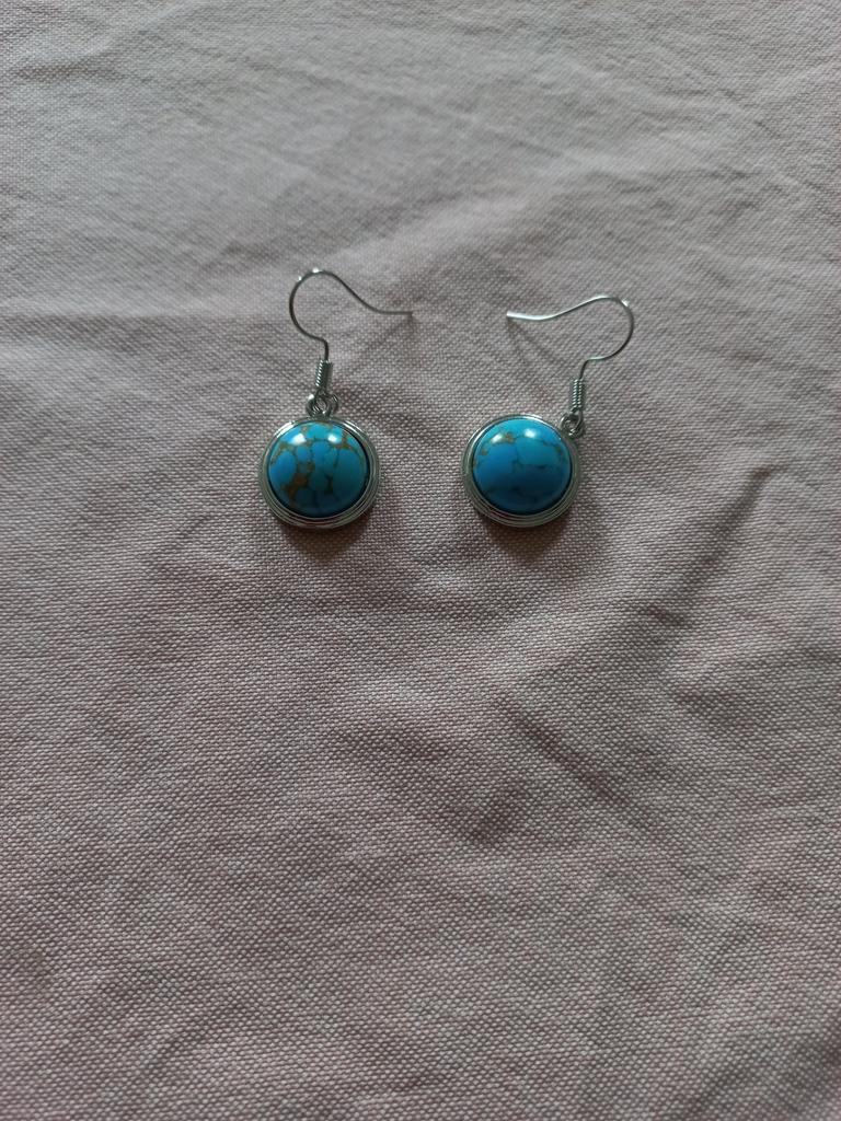 They look beautiful. The stone is natural turquoise. I generally like round shapes. Thank you!