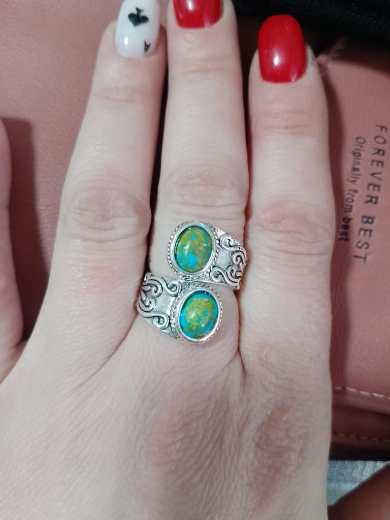 In the photo it looks like a transparent stone, like Murano glass, in reality it’s an opaque imitation of turquoise, I don’t like that, but it’s a matter of taste