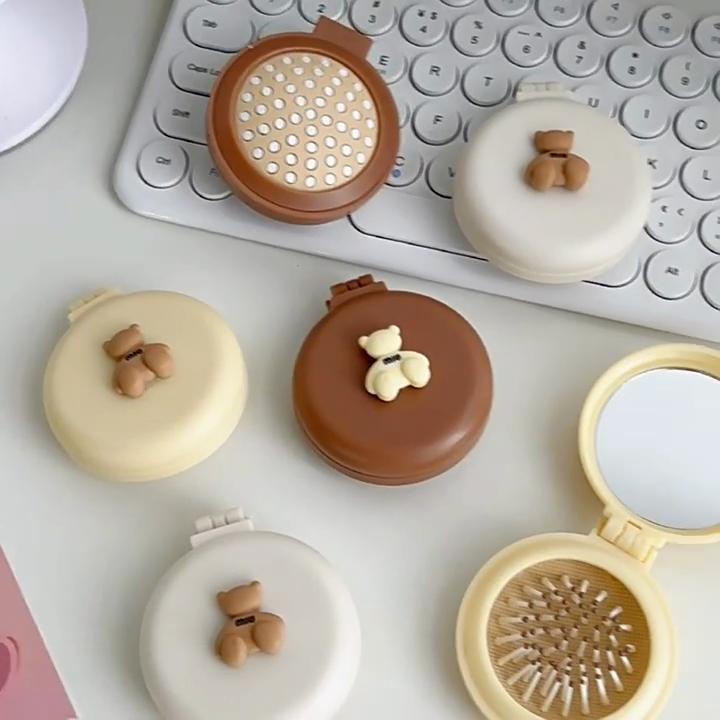 Cute Cartoon Folding Comb with Cosmetic Mirror for Girls Air Cushion Massage Portable Comb Kids Dress Up Makeups Toy Gifts