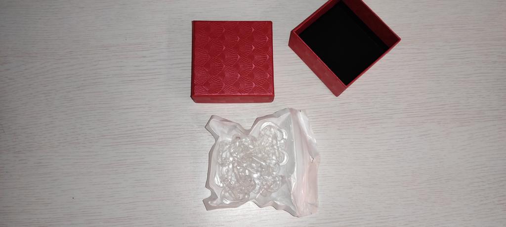 In a beautiful gift box, very nice. It was well packaged. The chain corresponds to the description. Minus: no clasp. The rings are connected to each other by lightly pressing, but this is not very convenient and probably won’t last long, the plastic will break...