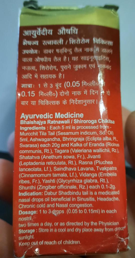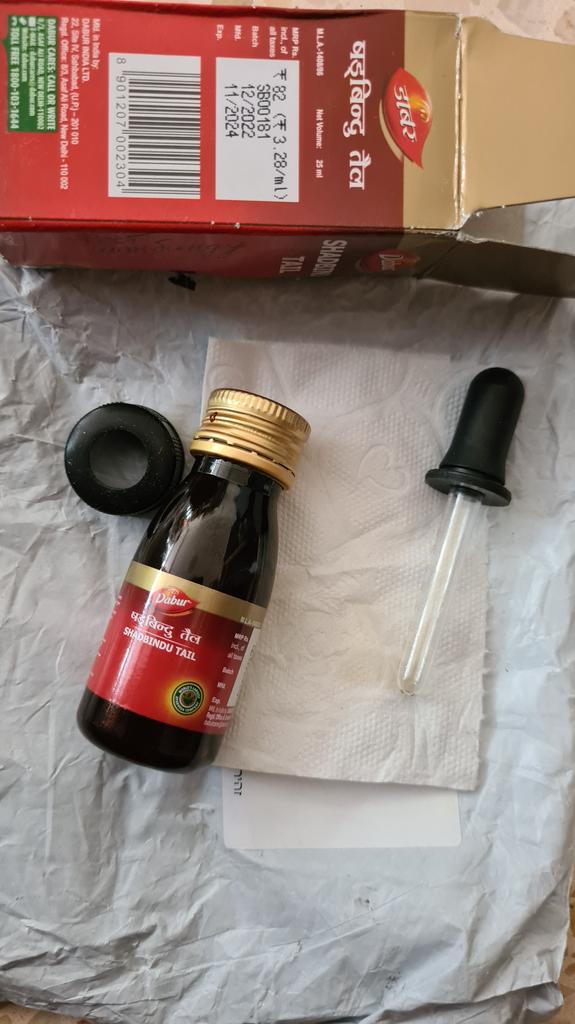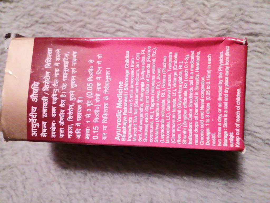 Oil door drops Shadbindu finally delivered, unfortunately not tried yet. Oil drops should be very good for sinusitis, sinusitis