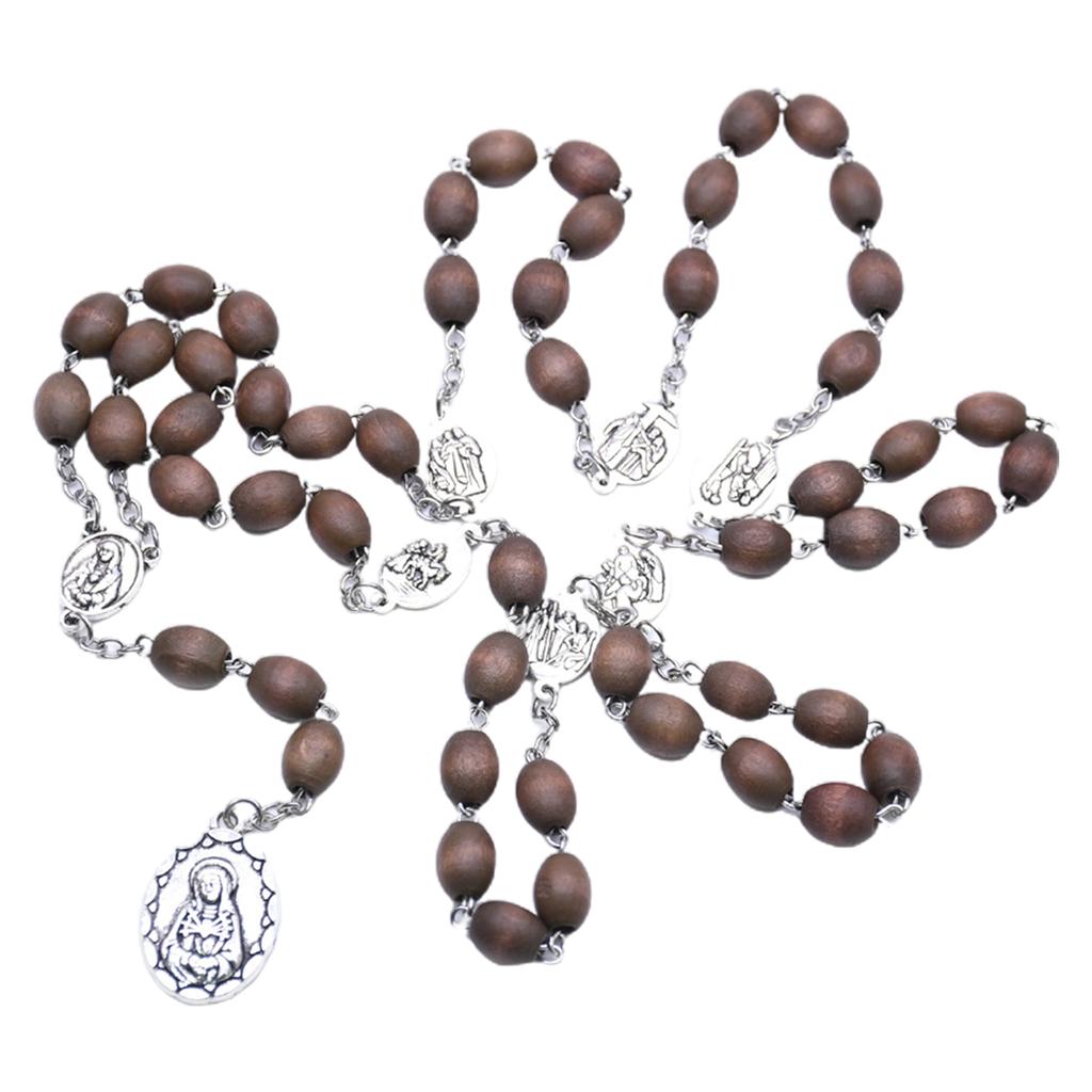 Wood Catholic Rosary Necklace Beads Holy Mother Hanging Pendant Charm for Women Men Church Decoration Meditation Praying