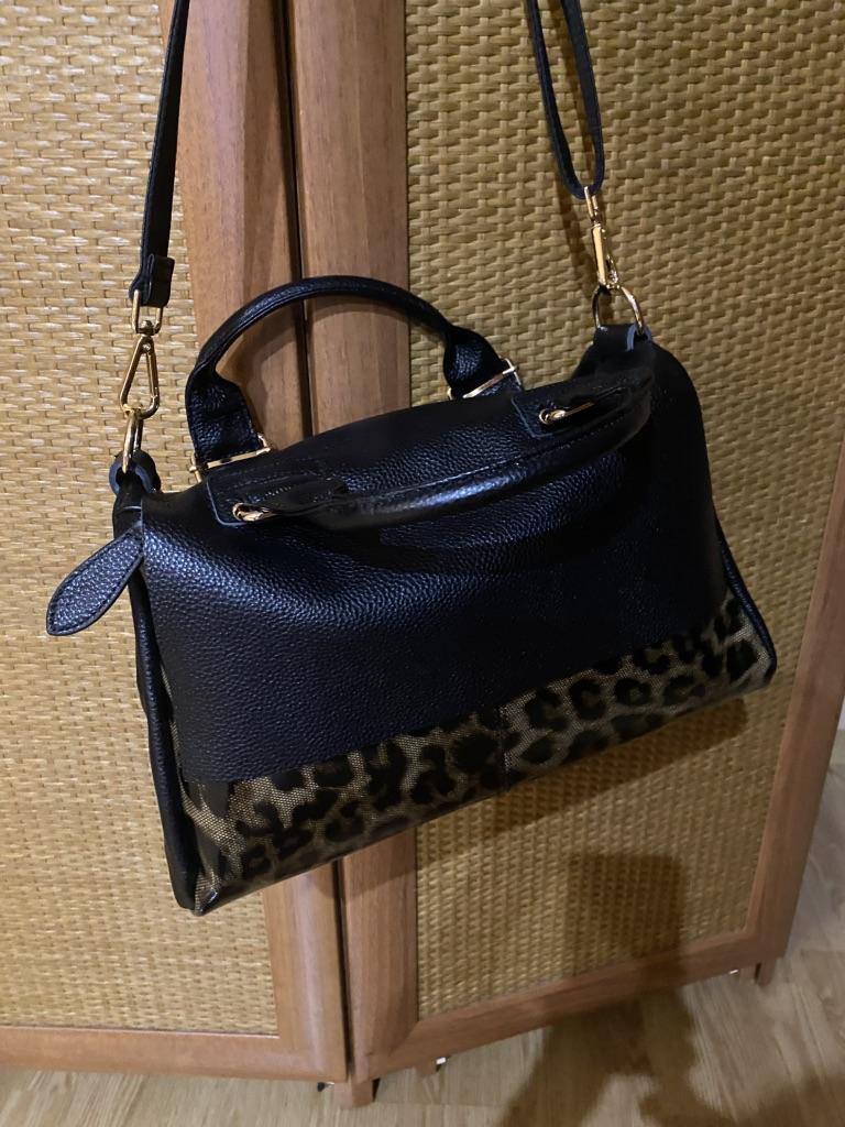 I didn't like the bag very much, the leopard spots are not clear, it's heavy without anything although it's still leather. The bag looks better in the photo, I am disappointed with this purchase.