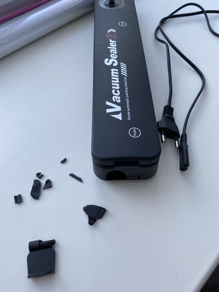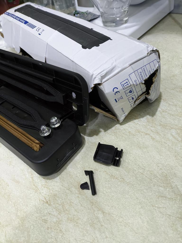 All packaging is damaged, one fastening on the vacuum sealer is broken