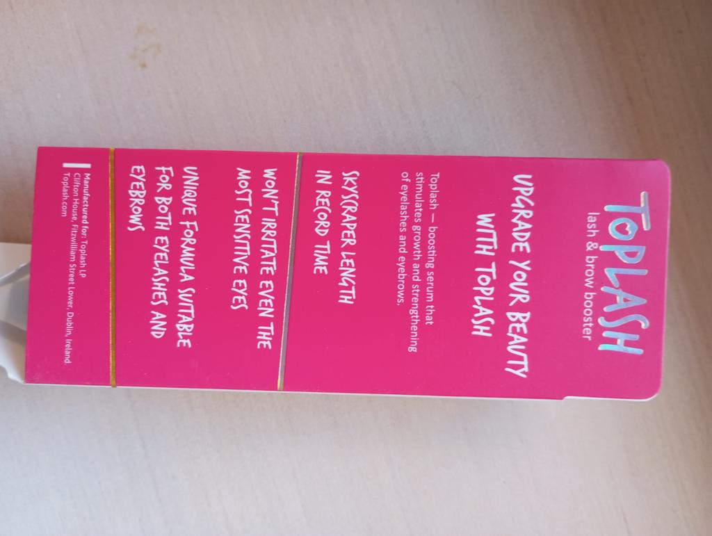 You have to be patient with this product.After using it for 6 weeks the eyelashes got healthier,thicker and darker.I damaged my eyelashes with extentions and it takes long time to bring them back to normal.With toplash this process is quicker.Just apply serum with brush as an eyeliner close to the lashes on your lid every day.Came in box with instructions.Very quick delivery.Happy Shopping!