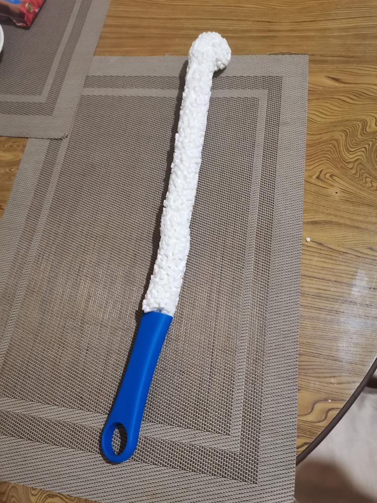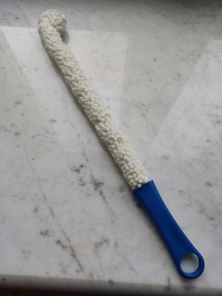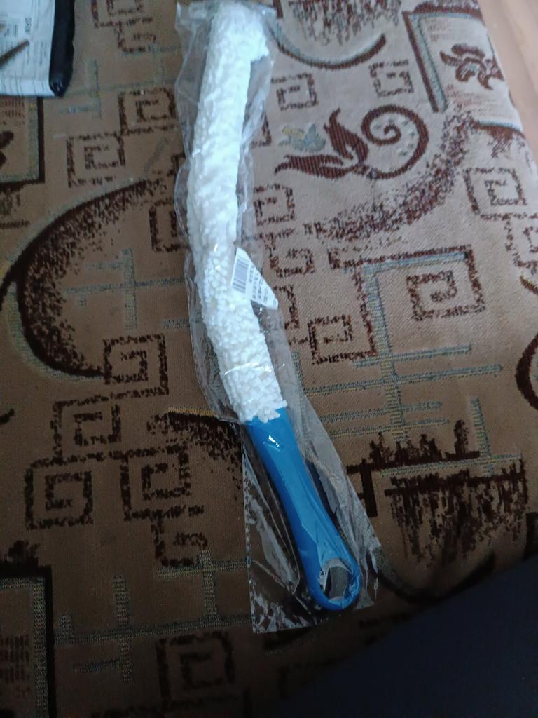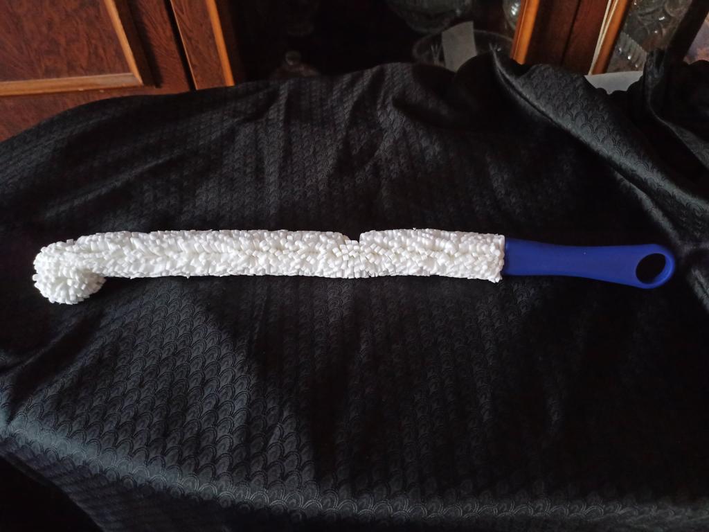A brush with a diameter of 3 cm, a length (without handle) a little more than 30 cm. If necessary, the brush can be bent as you need.