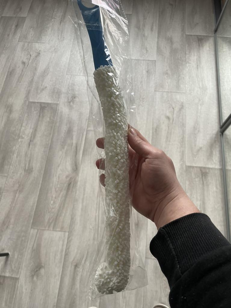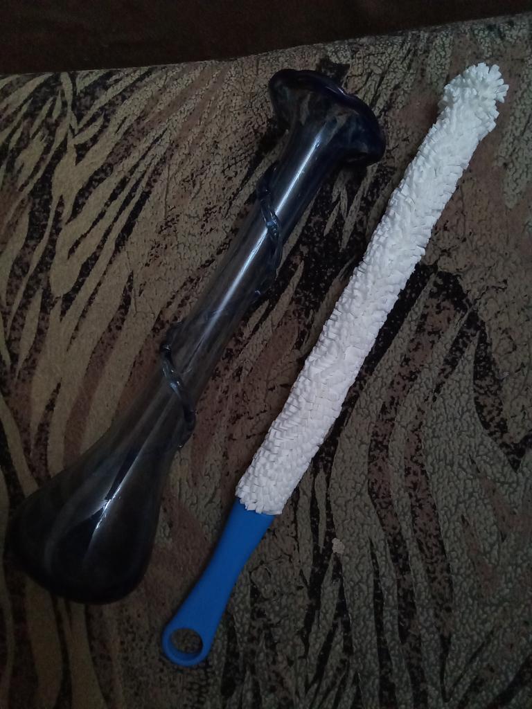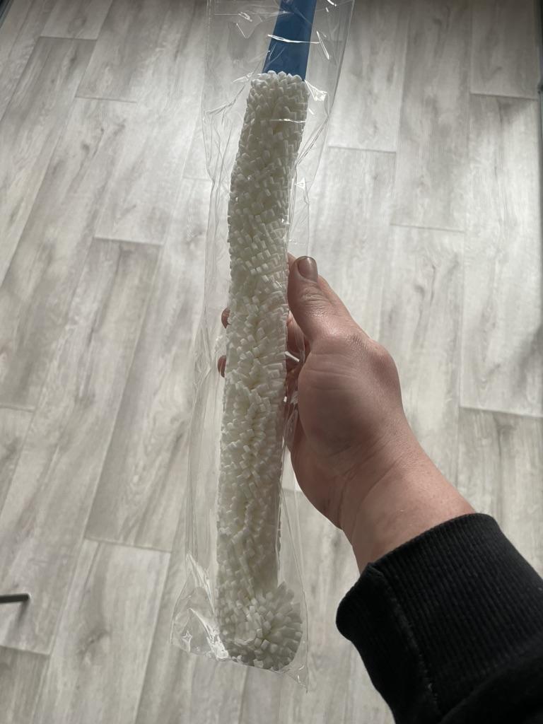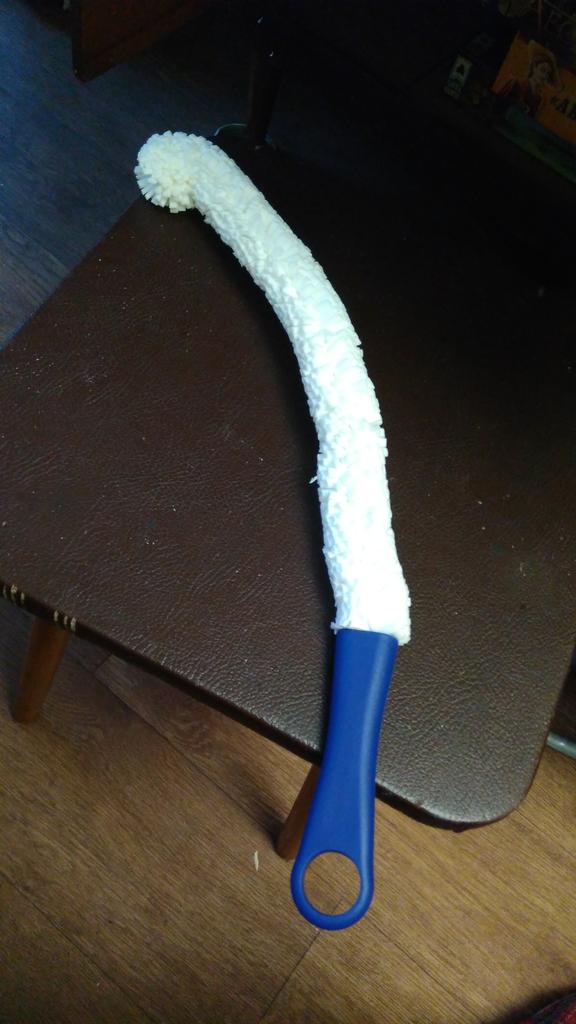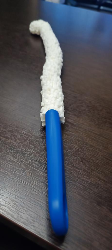 A brush with a diameter of 3 cm, a length (without handle) a little more than 30 cm. If necessary, the brush can be bent as you need.