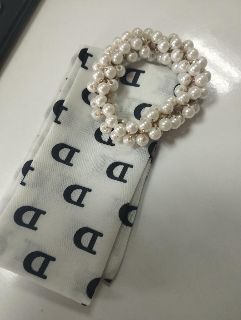 French Vintage Pearl Silk Printing Hair Ribbon For Women Fashion Elastic Hairbands Hair Scrunchie Hair Accessories