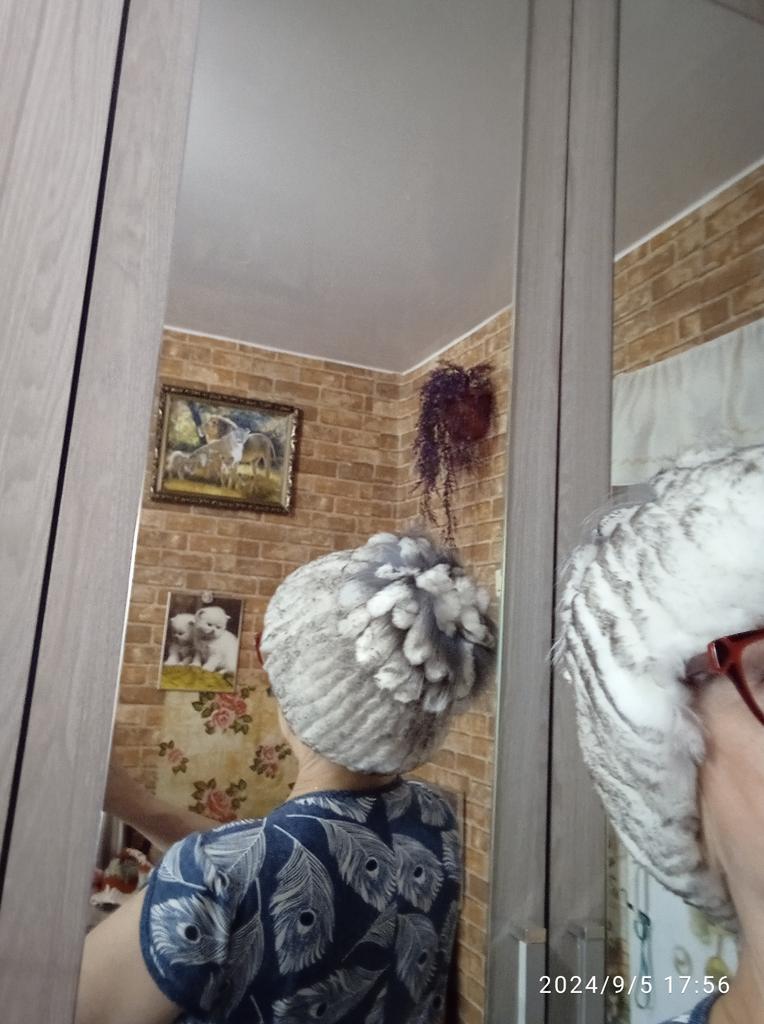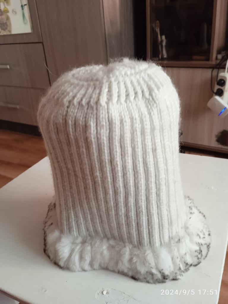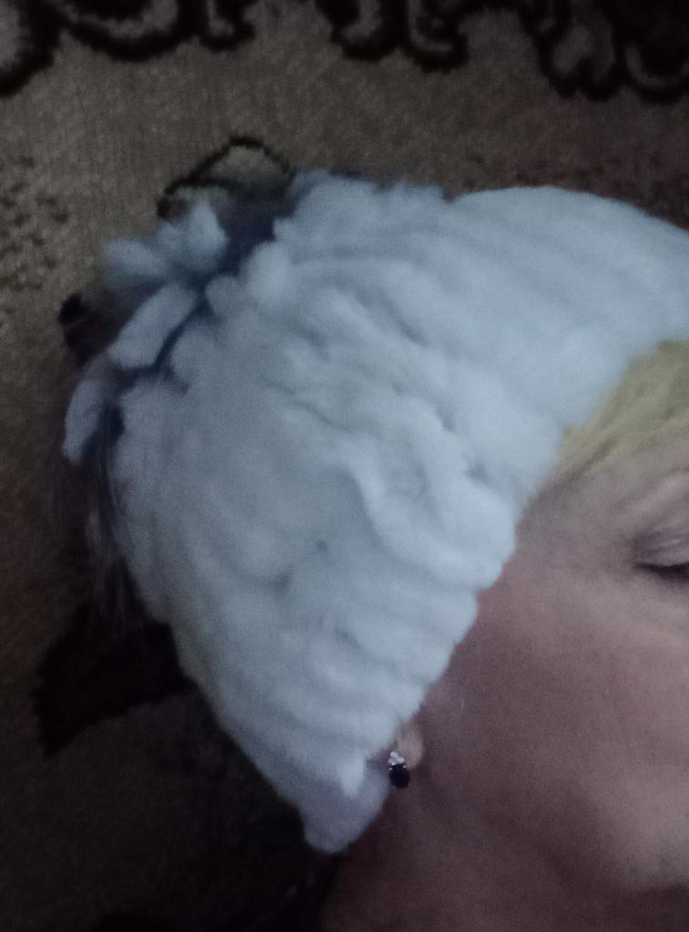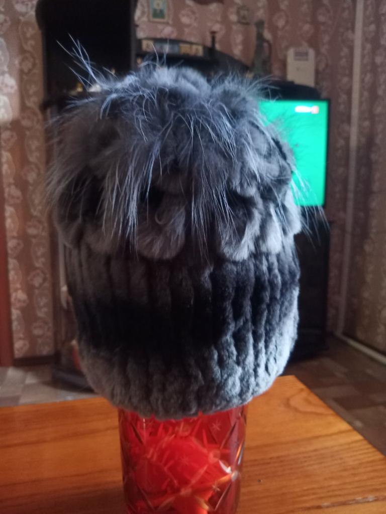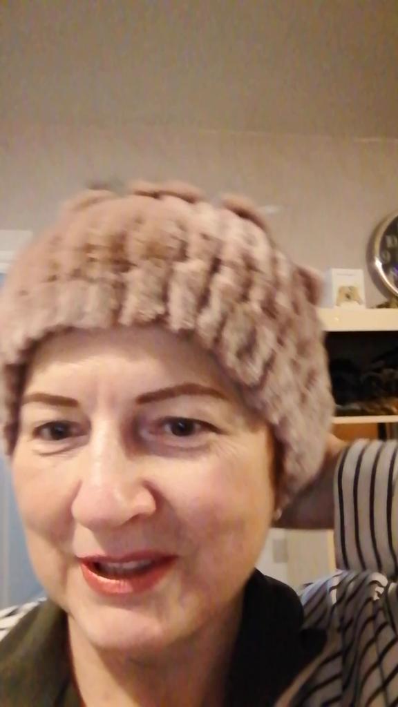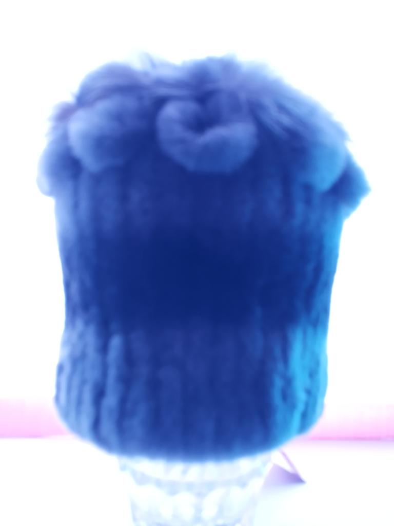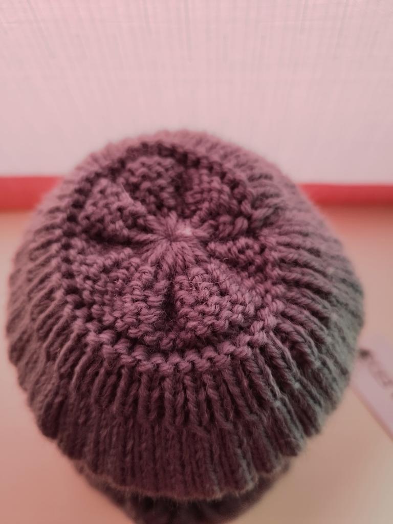 The knitting is too tight, and this affects the shape of the headdress. It resembles a sports cap in the way it sits on the head, because it is too deep and the top of the cap looks like a pompom.