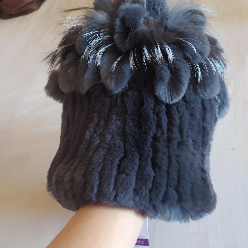 Fluffy Winter Real Fur Hat Natural Rex Rabbit Fur Warm Cap Ladies Knitted 100% Geunine Fur Hats