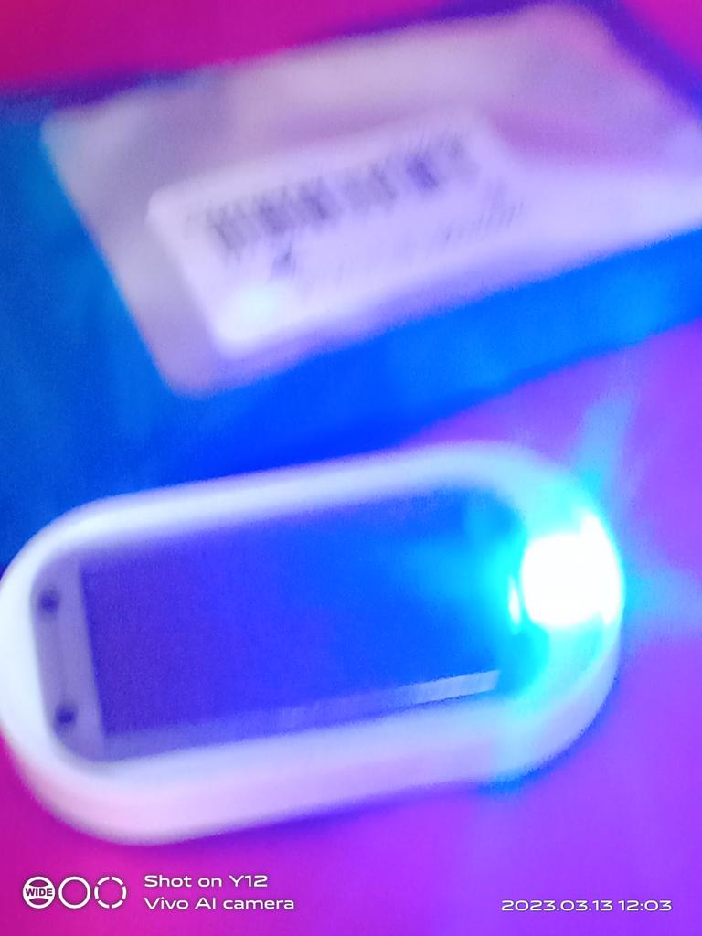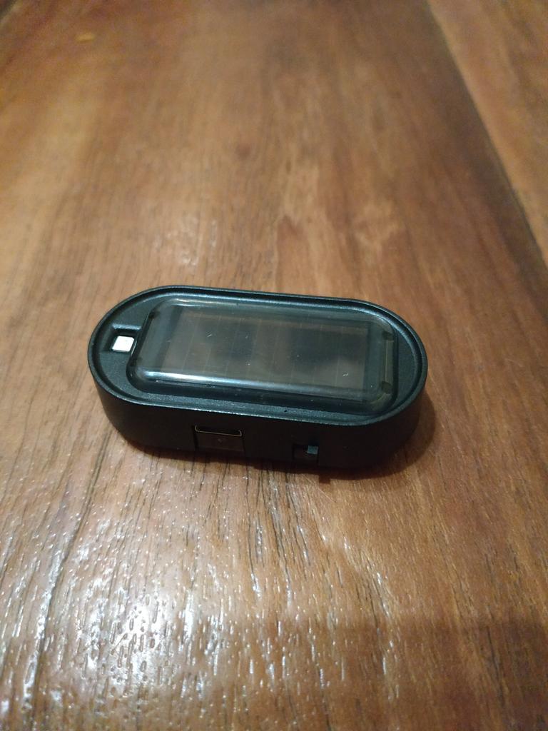 Little solar charging device just in case if you stuck without electricity.Charges without electricity,just leave on your dashboard if you are using in the car.Has sticky pad at the back so can attach it to your sun visor or any other surface.Blinks with red light or green light.Came in plastic bag in 3 weeks.Happy Shopping!