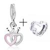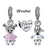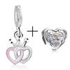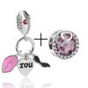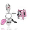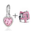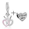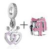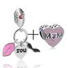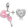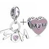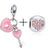 2pcs /Lot Pink Mom Heart Key Lock Charm Beads Pendant Fit Original Diy Brand Bracelet Necklaces For Women Men Wife Jewelry Making