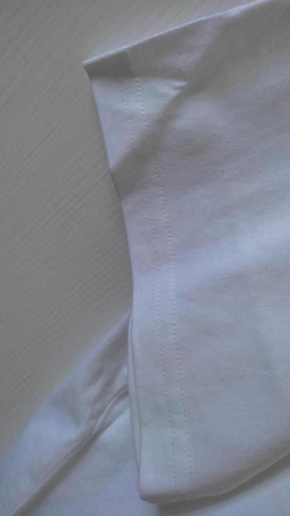 The T-shirt arrived with 8 cm of threads sticking out. . I don't blame anyone, I evaluate only the goods that arrived. Otherwise, excellent, the color is what I needed, the fabric is nice.