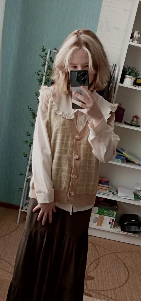 French Retro Green Plaid Striped Knitted Cardigan Vest Vest Women's Spring and Autumn Fashion New V-neck Sweater Coat Women