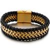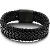 12MM Black Genuine Leather Wrap Bracelet for Men Braided Cowhide & Stainless Steel Mens Bracelets with Magnet Clasp Engraveable