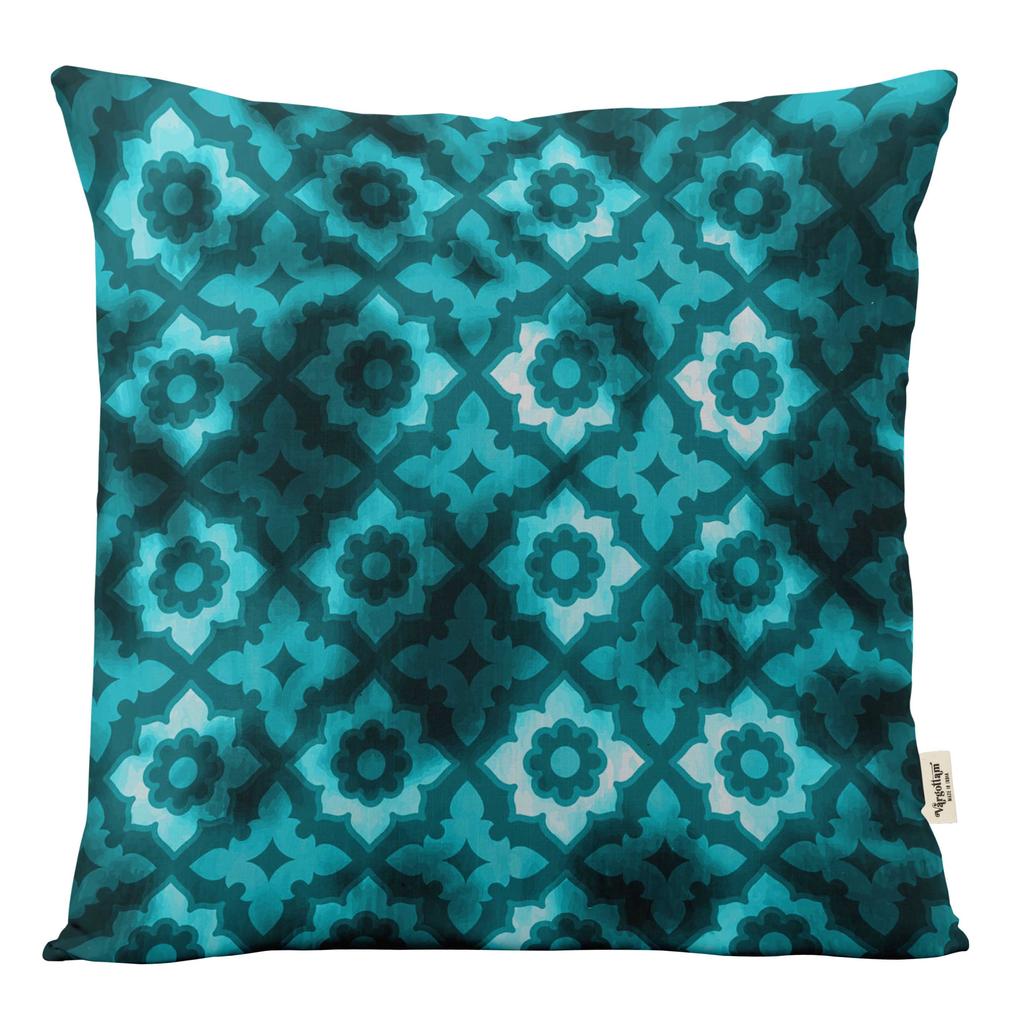 Vargottam Square Pillow Cover - Decorative Pillow Covers 12x12 Inches, Printed Teal Blue Theme Pillowcase,