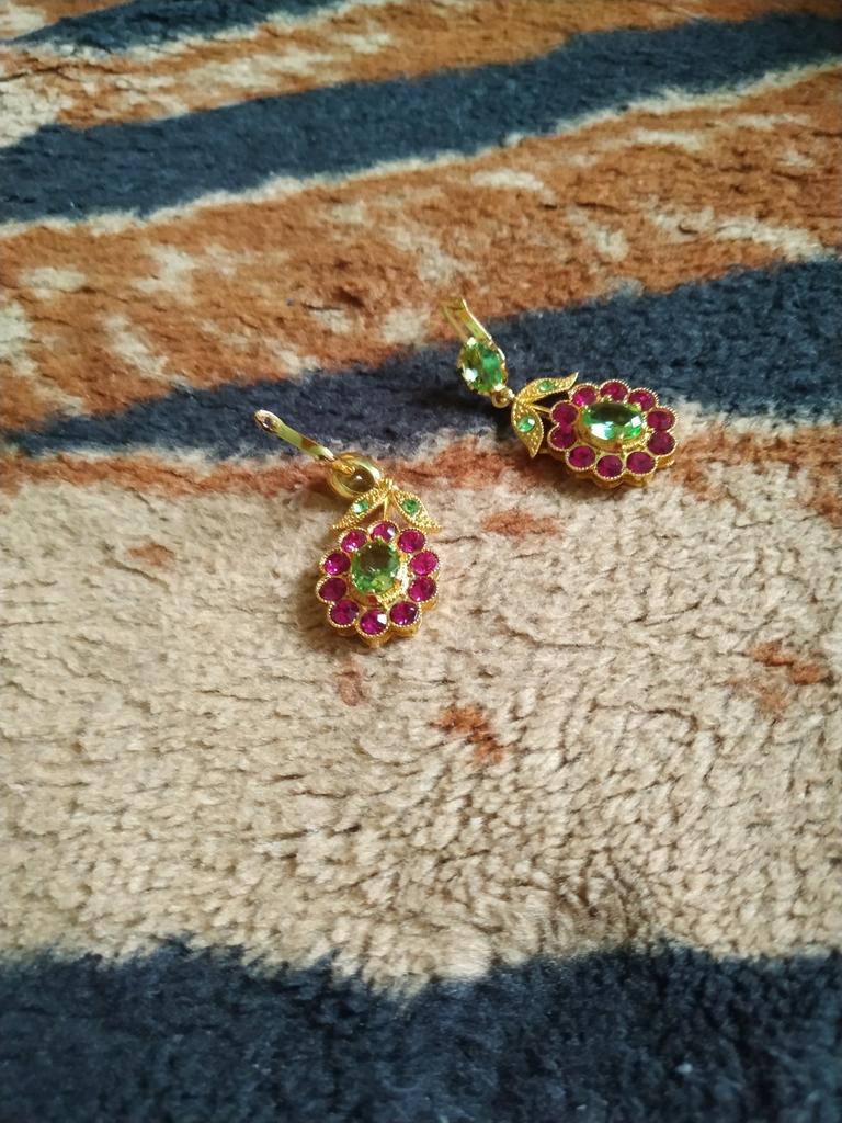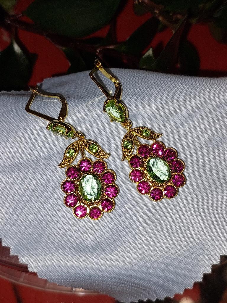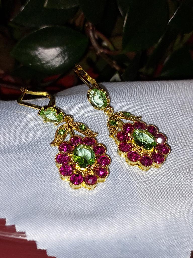 Pretty Gold Color Leaf Inlaid with Green Stone Hanging Flowers Drop Earrings New Women's Jewelry Accessories