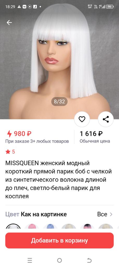 MISSQUEEN Women Fashion Short Straight Bob Wig with Bangs Synthetic Fiber Shoulder Length Light White Cosplay Wig