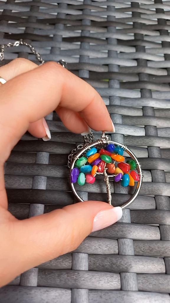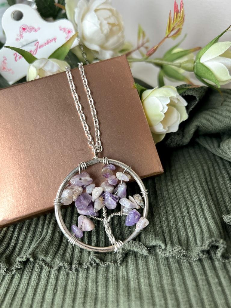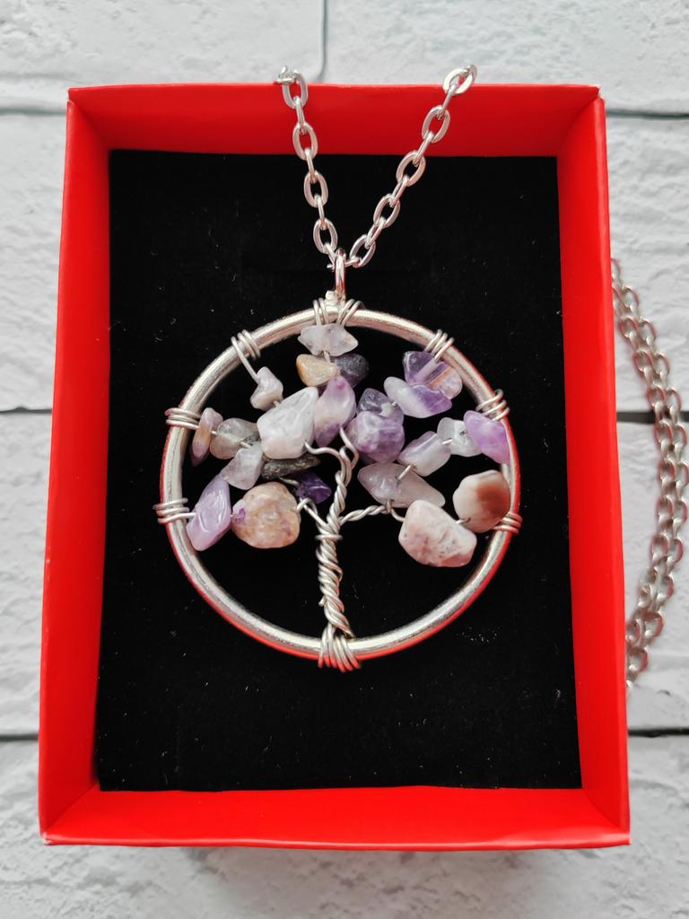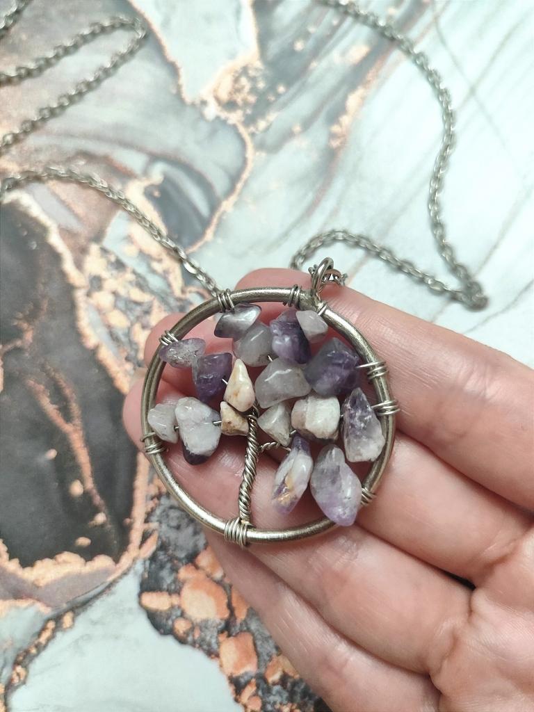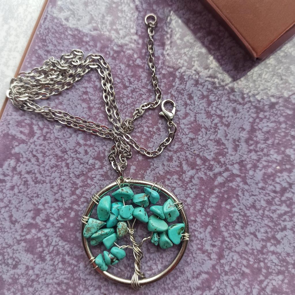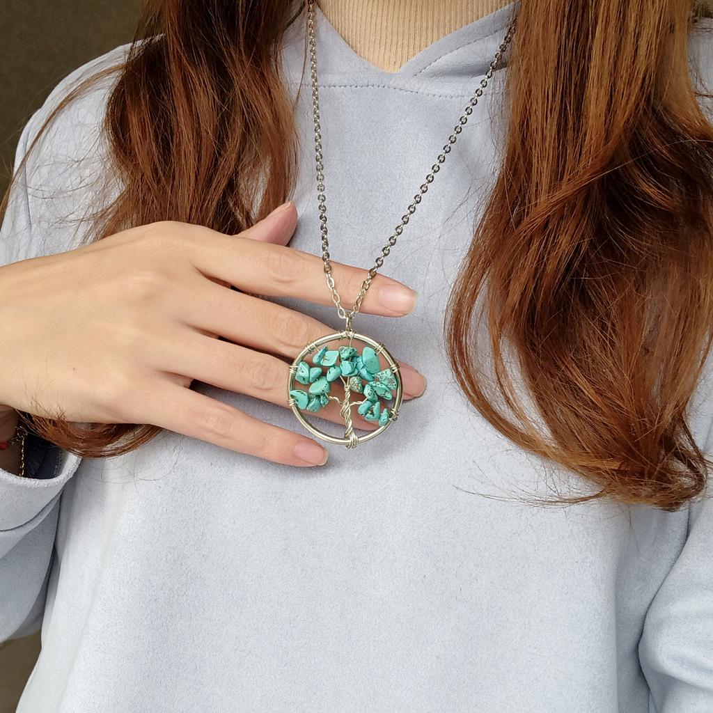 Nacre ,Garnet ,Chakra,Tiger Eye,Stone Coral, Turquoise, Amethyst, Aventurine, Natural Stone Wire Wrapped Tree of Life Natural Stone Necklace