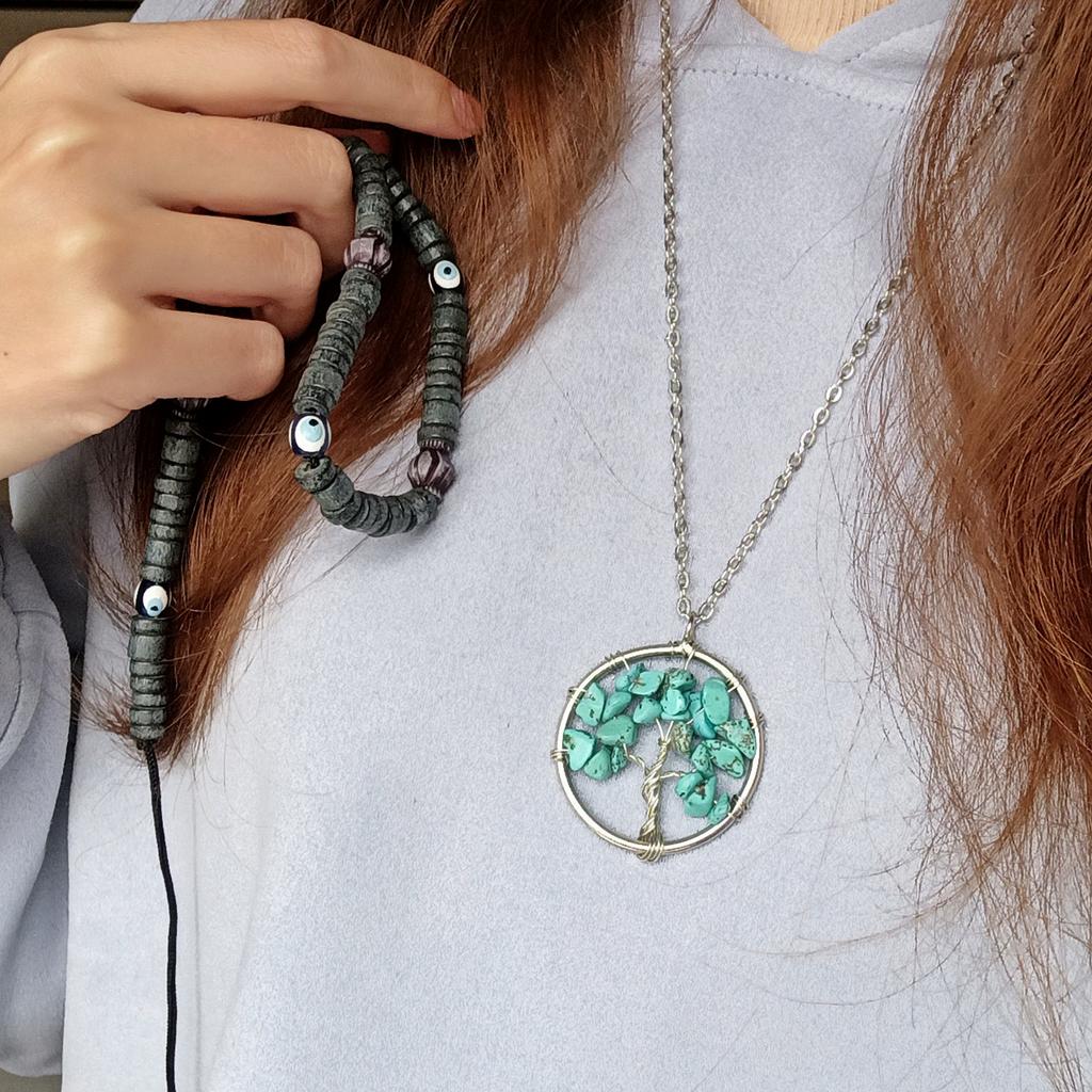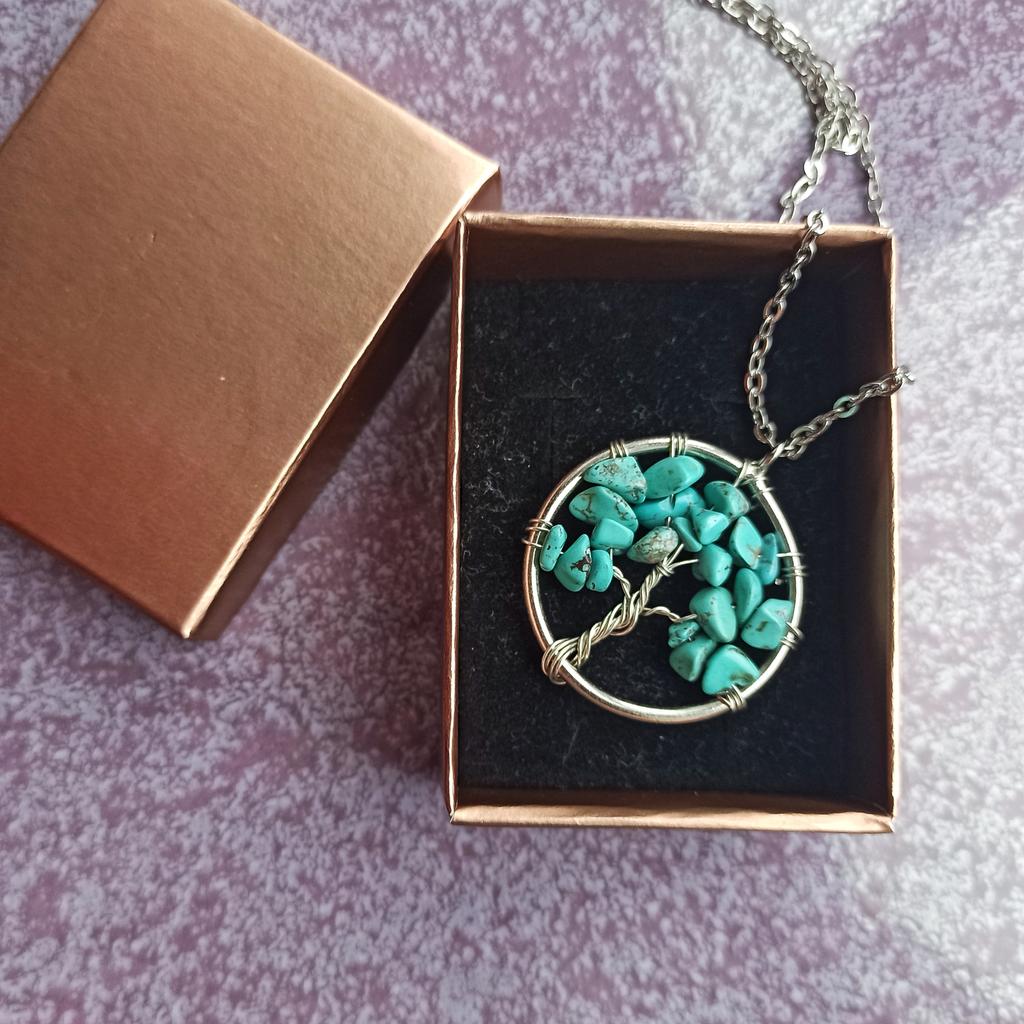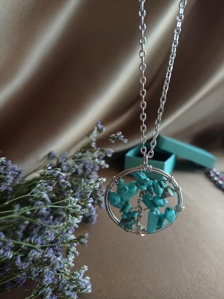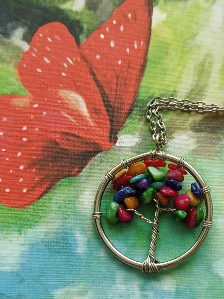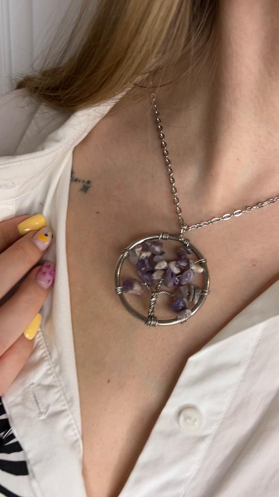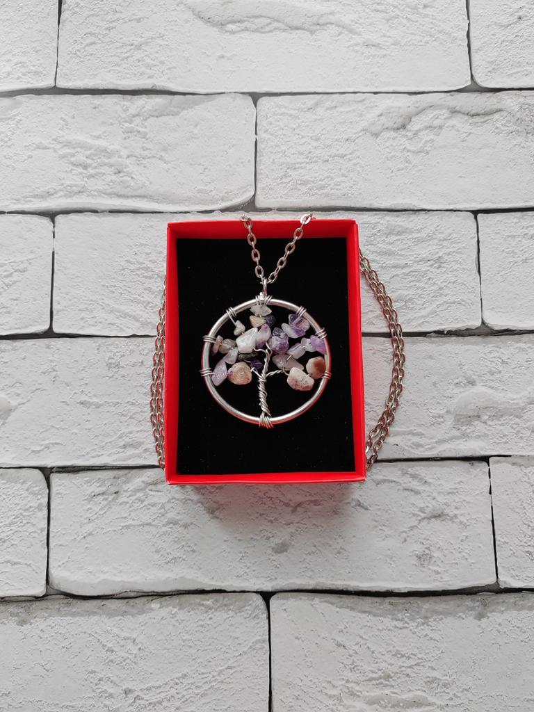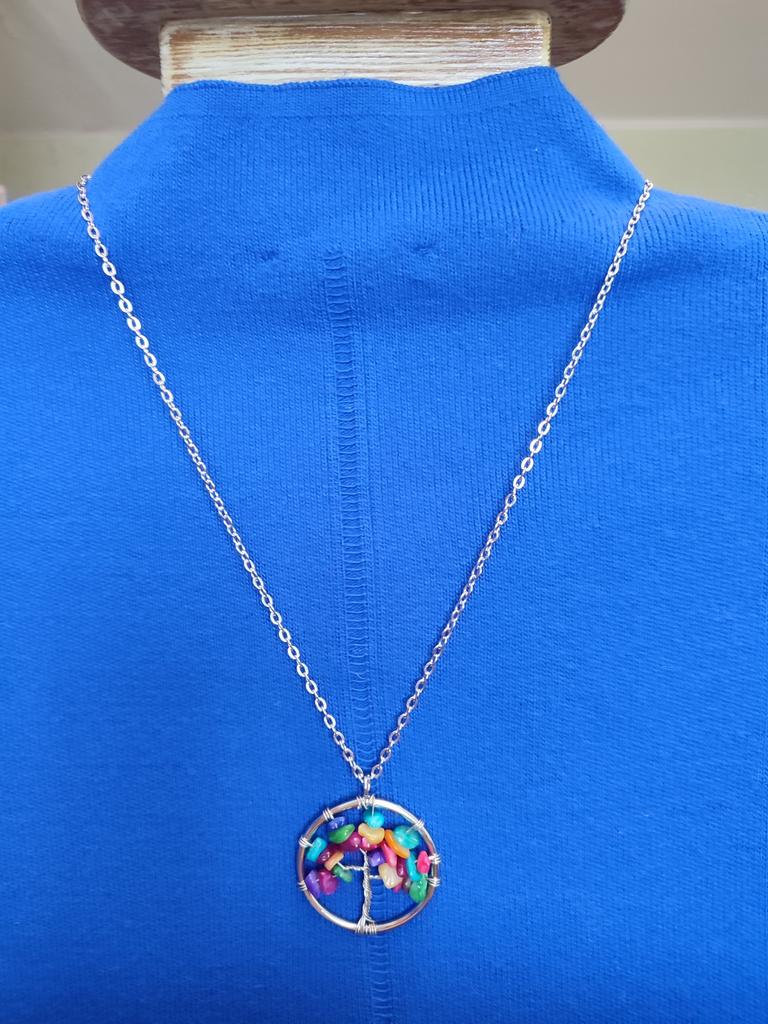 Nacre ,Garnet ,Chakra,Tiger Eye,Stone Coral, Turquoise, Amethyst, Aventurine, Natural Stone Wire Wrapped Tree of Life Natural Stone Necklace