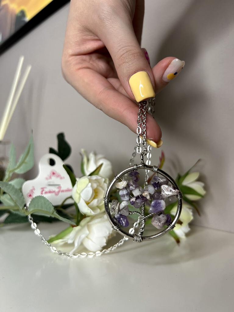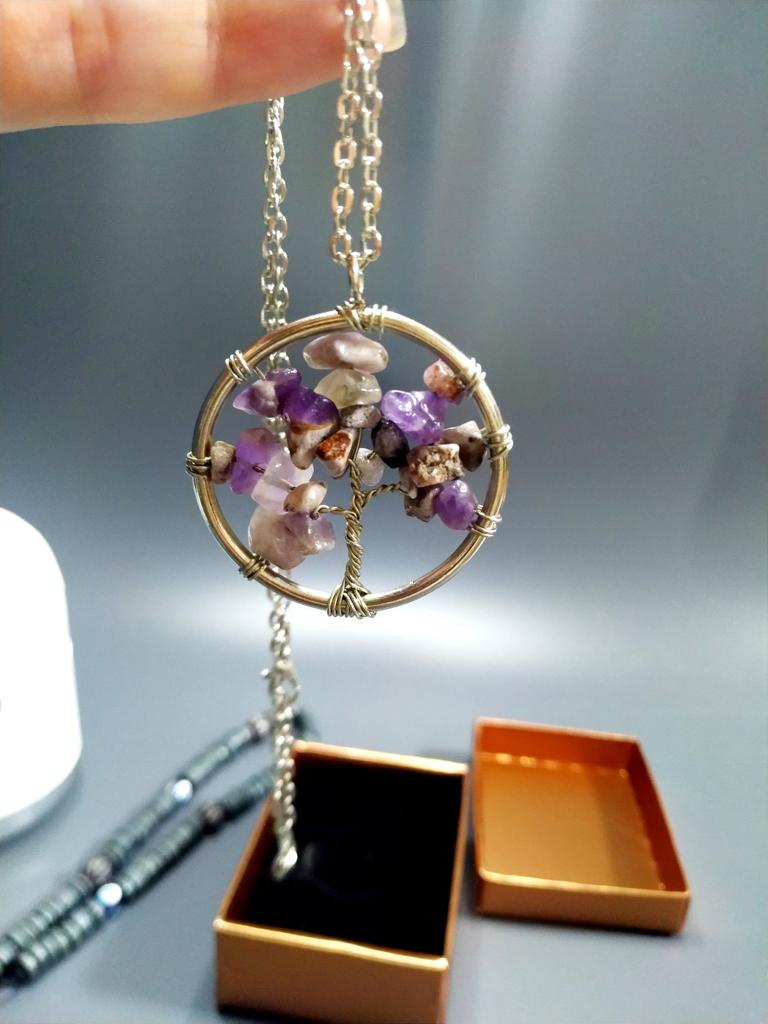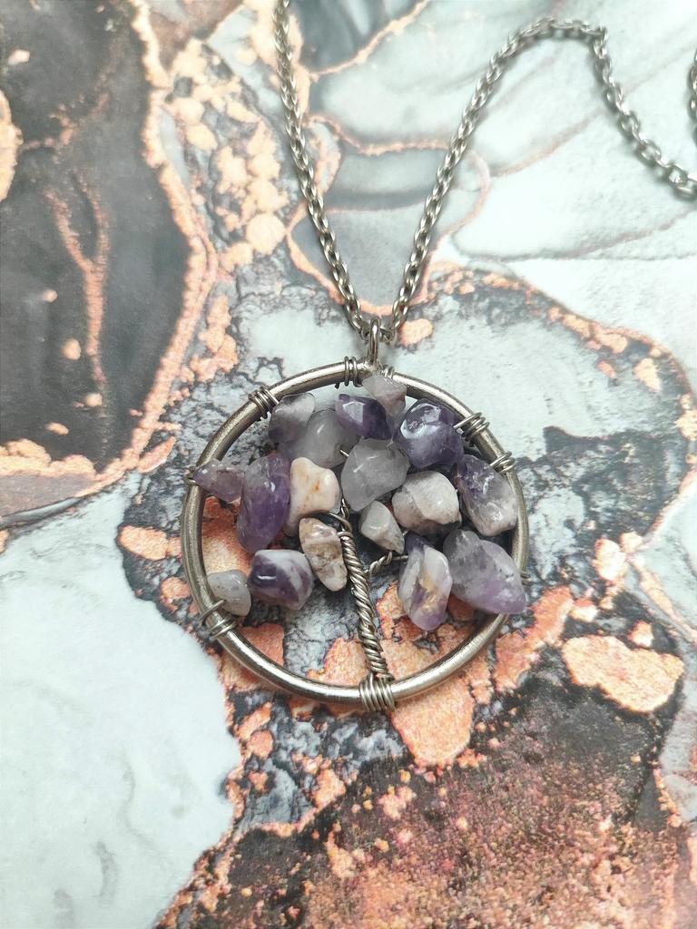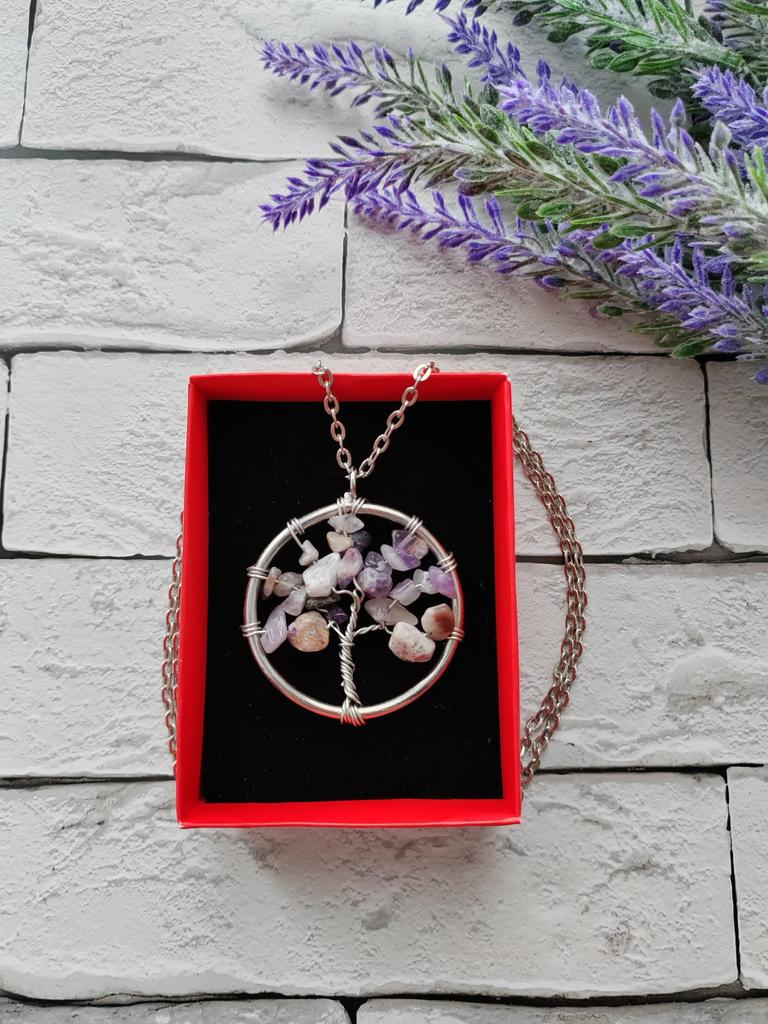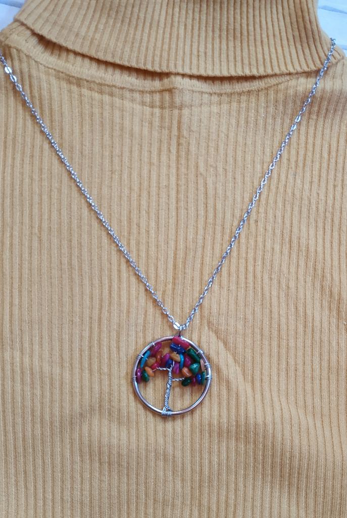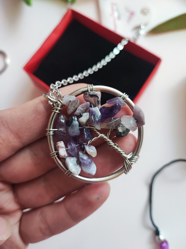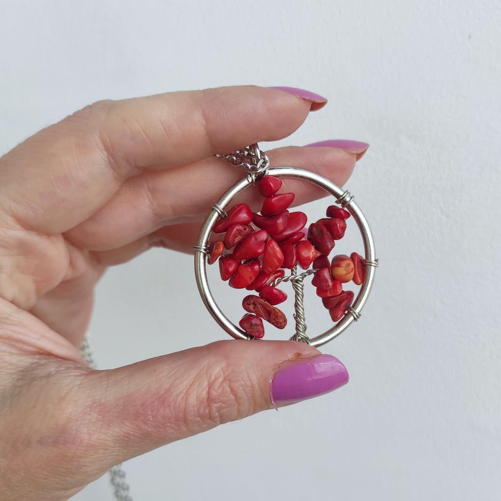 Nacre ,Garnet ,Chakra,Tiger Eye,Stone Coral, Turquoise, Amethyst, Aventurine, Natural Stone Wire Wrapped Tree of Life Natural Stone Necklace