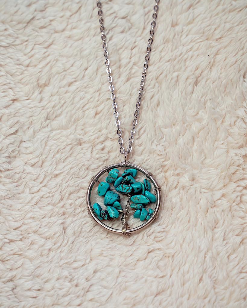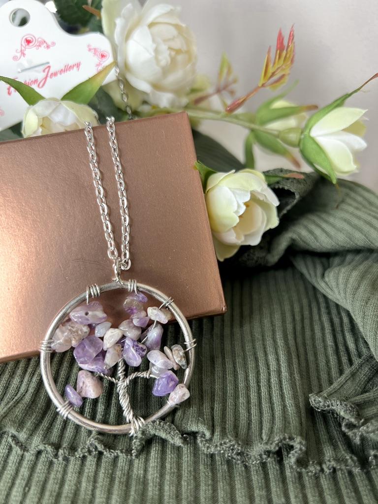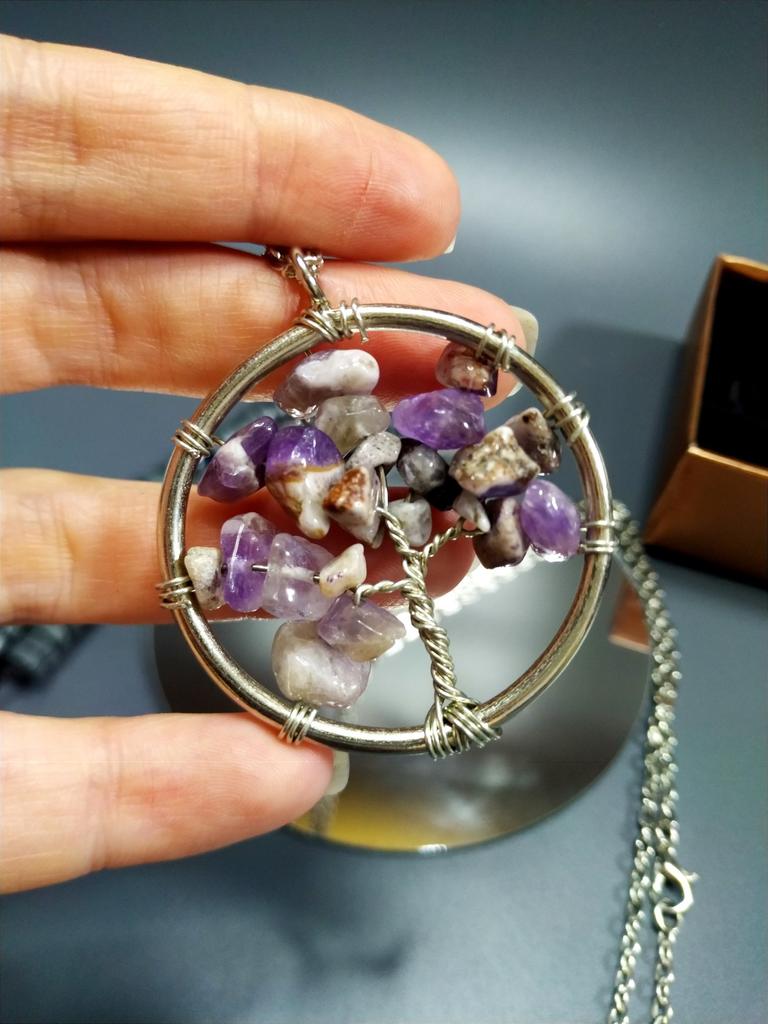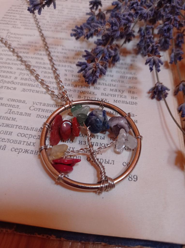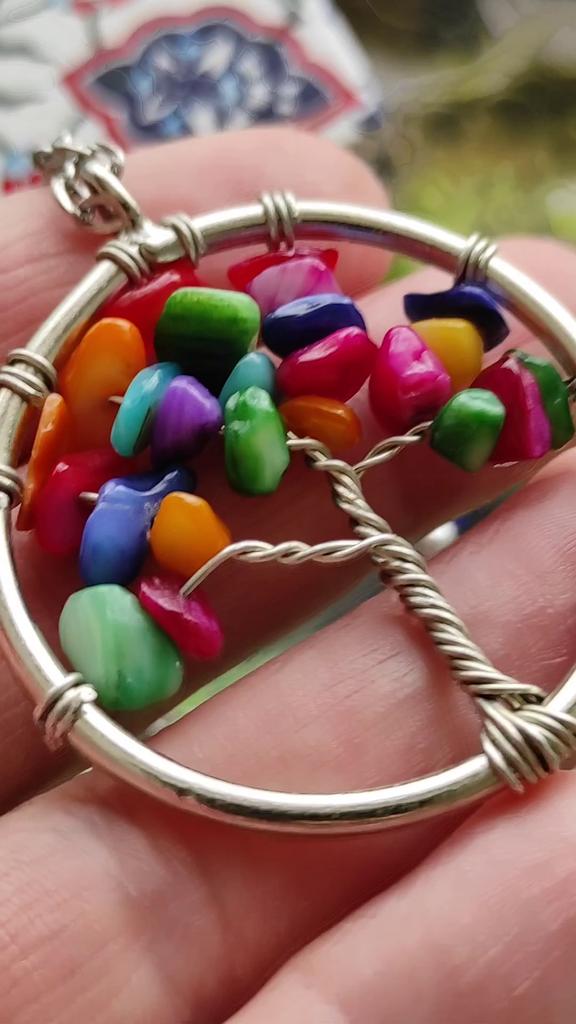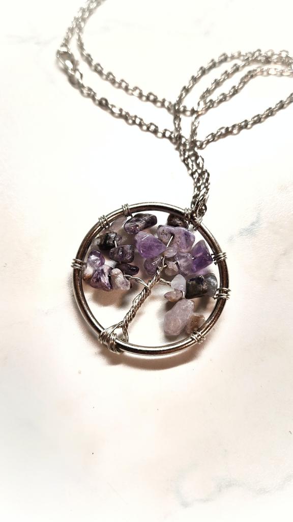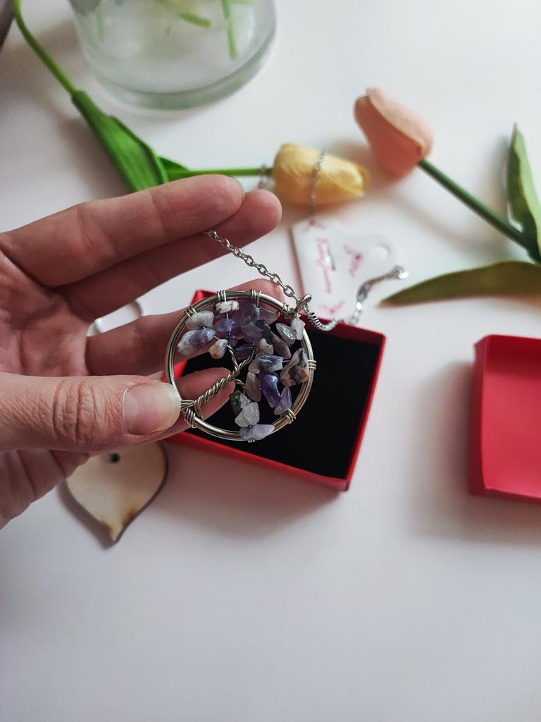 Nacre ,Garnet ,Chakra,Tiger Eye,Stone Coral, Turquoise, Amethyst, Aventurine, Natural Stone Wire Wrapped Tree of Life Natural Stone Necklace