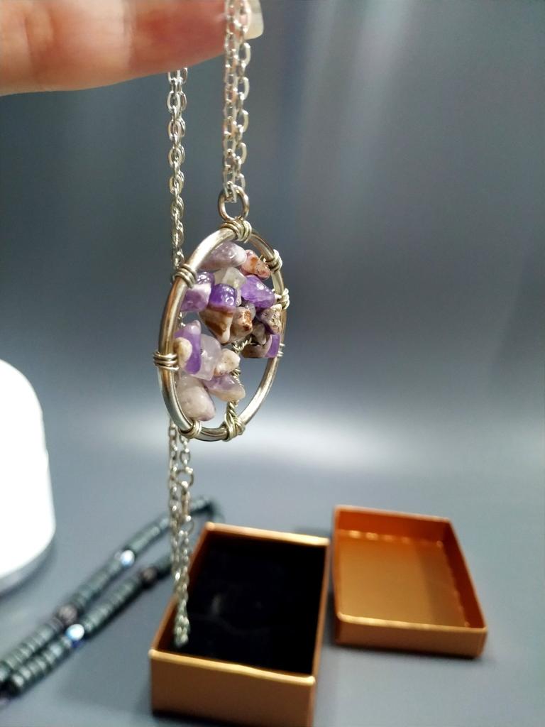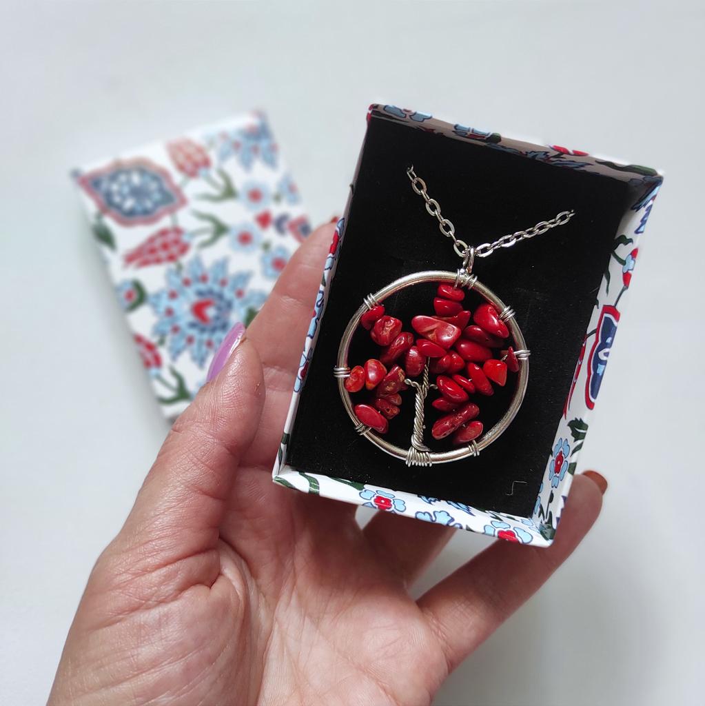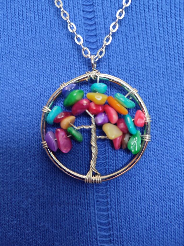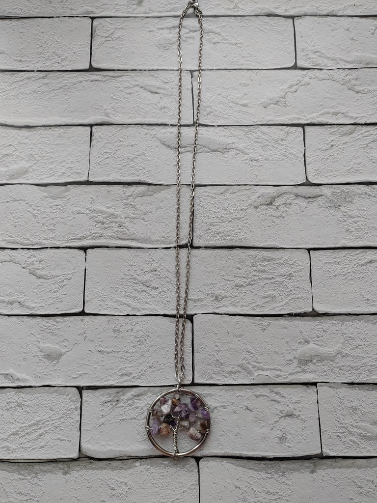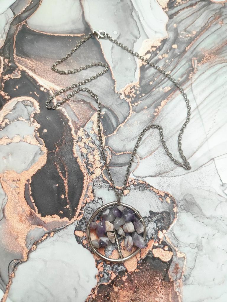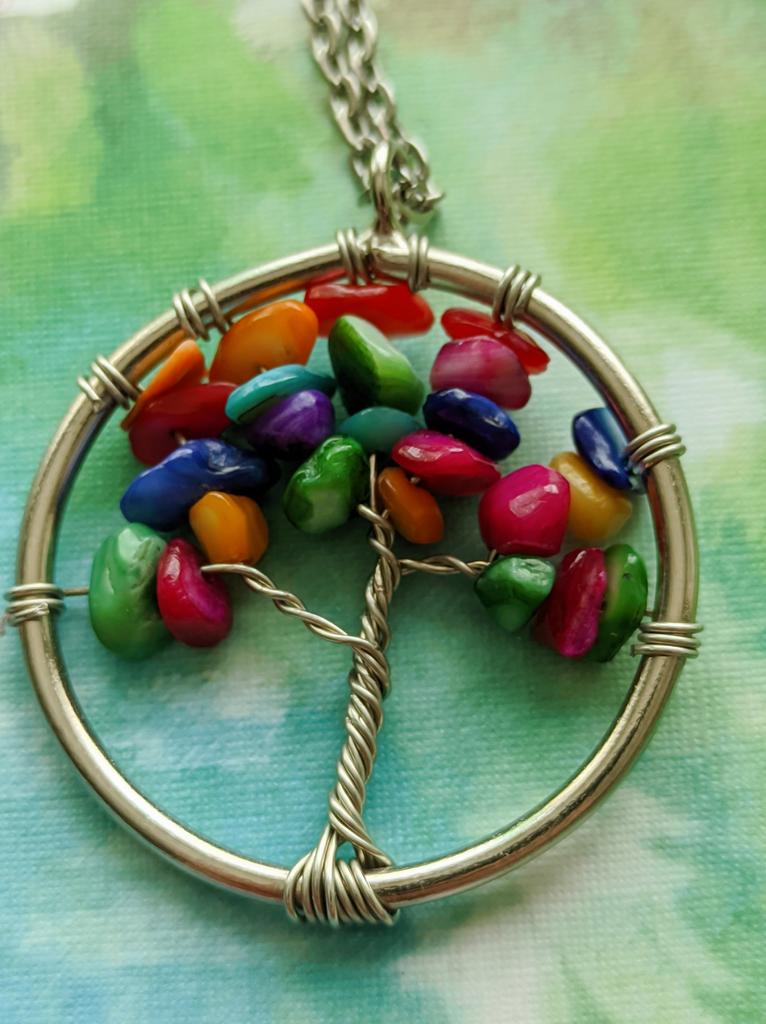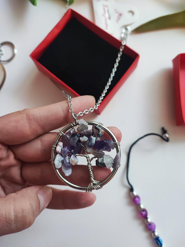 Nacre ,Garnet ,Chakra,Tiger Eye,Stone Coral, Turquoise, Amethyst, Aventurine, Natural Stone Wire Wrapped Tree of Life Natural Stone Necklace