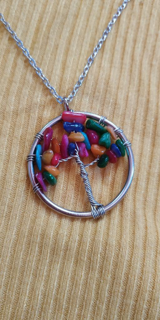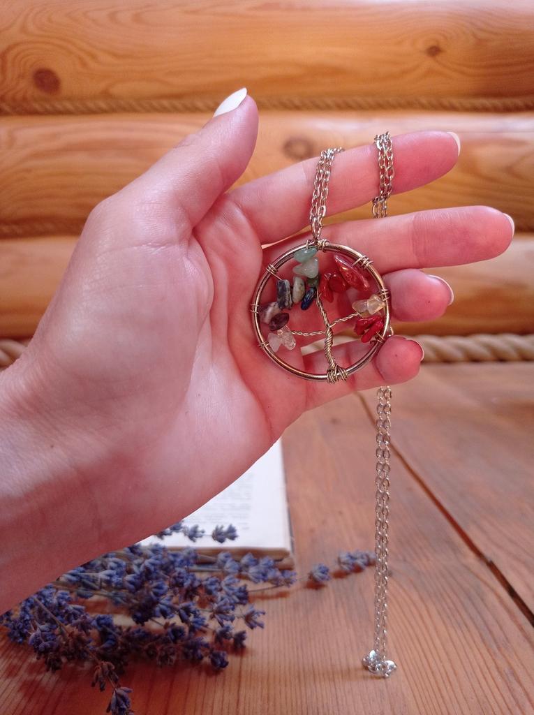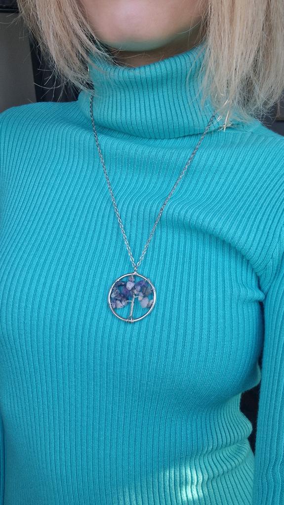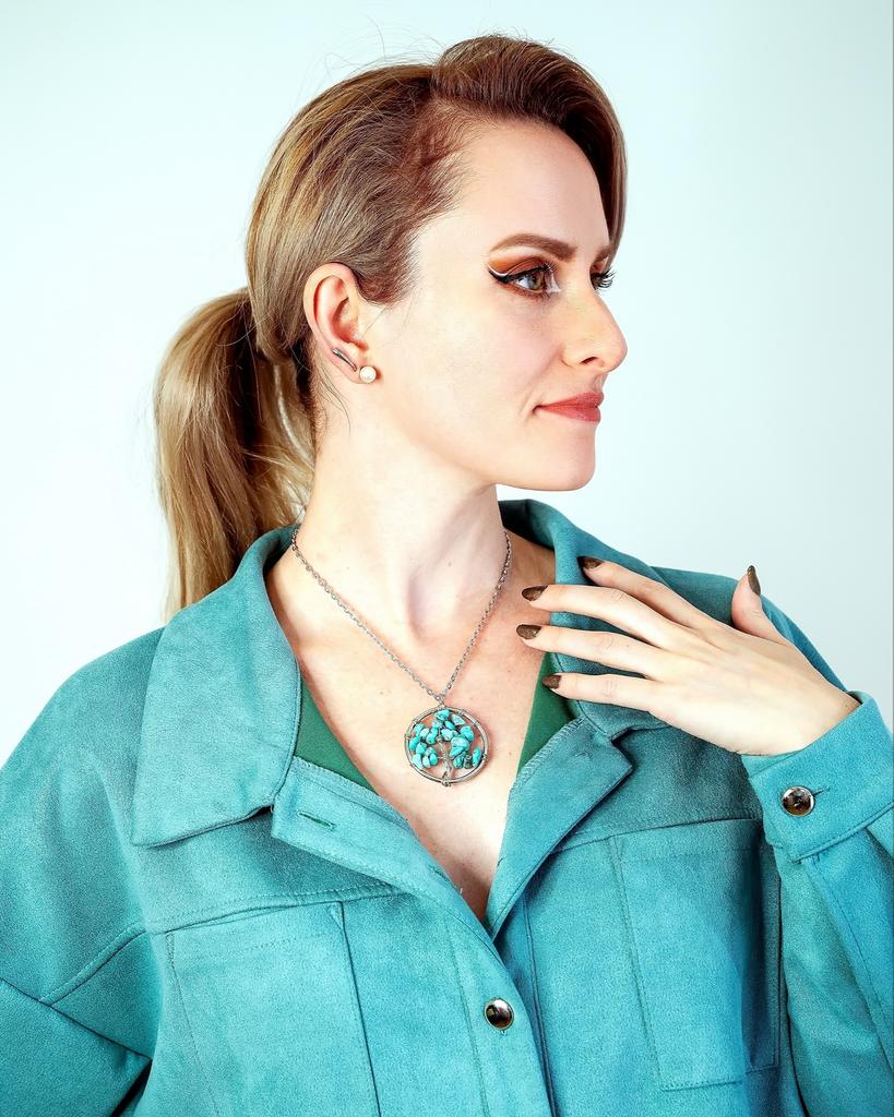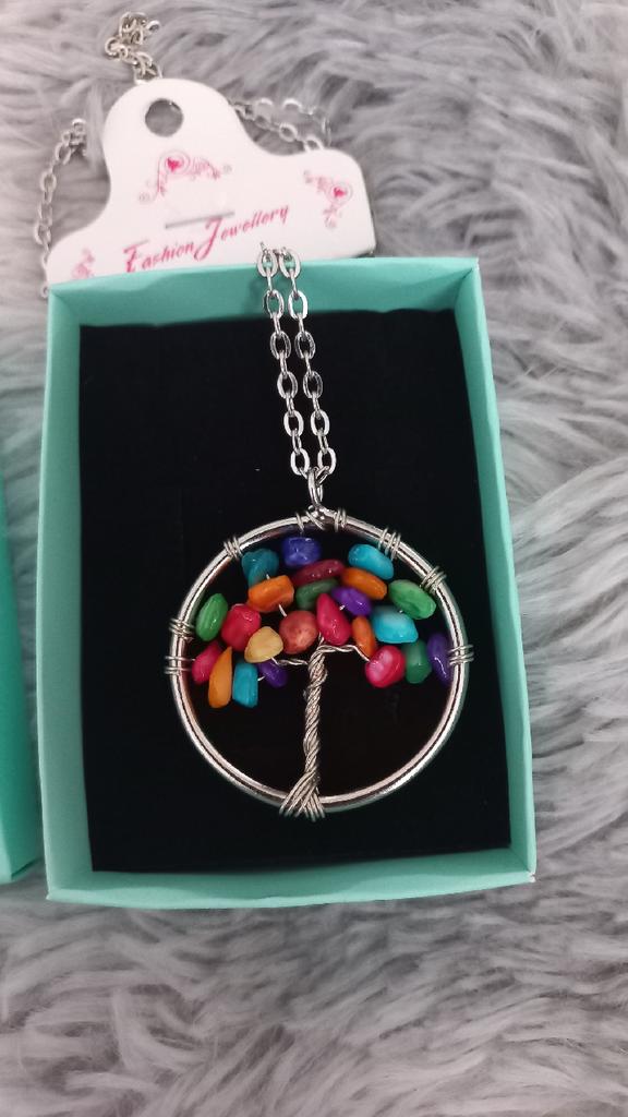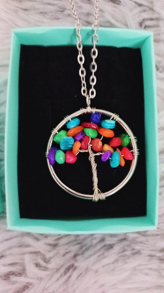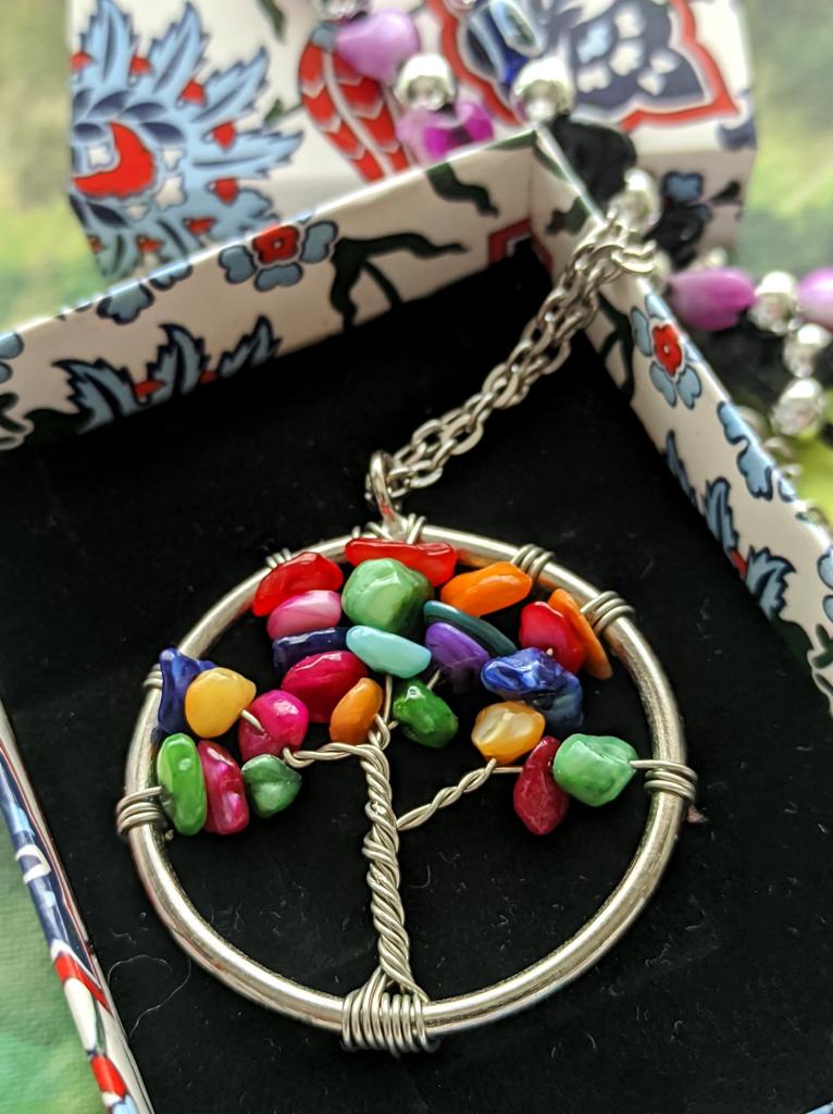 Nacre ,Garnet ,Chakra,Tiger Eye,Stone Coral, Turquoise, Amethyst, Aventurine, Natural Stone Wire Wrapped Tree of Life Natural Stone Necklace